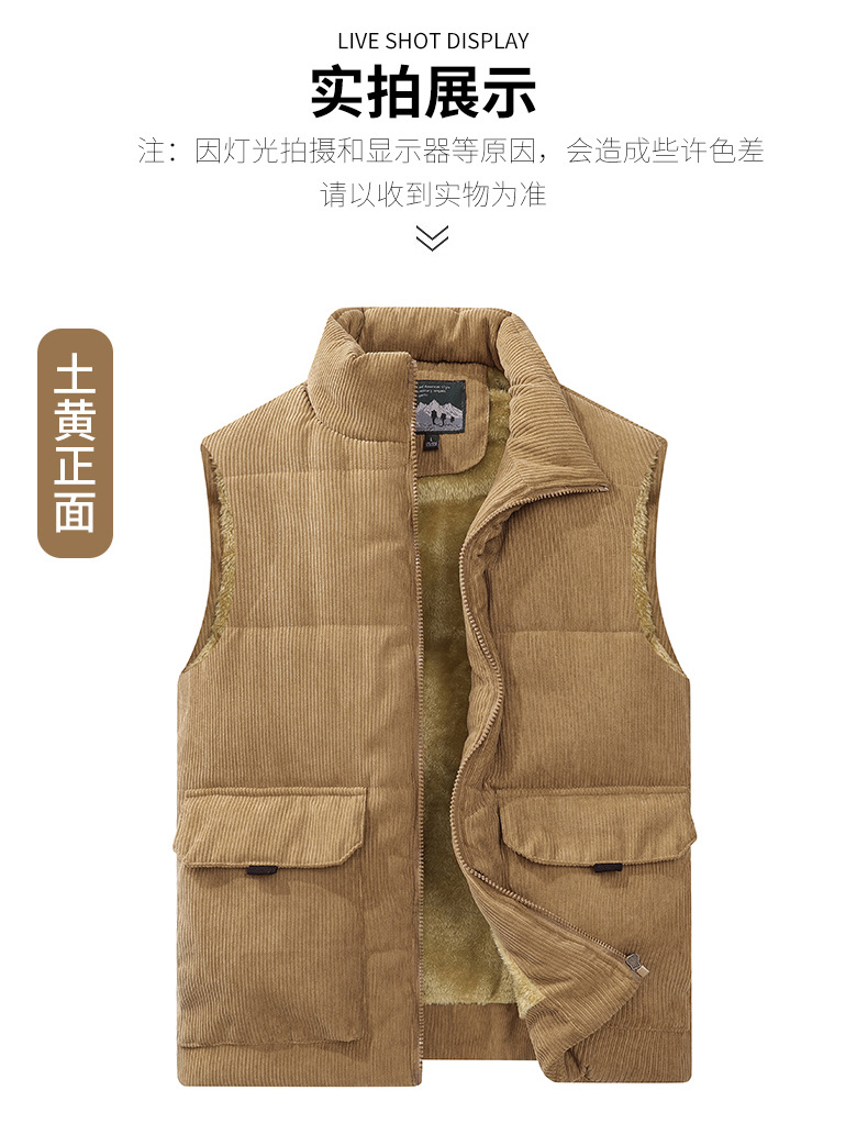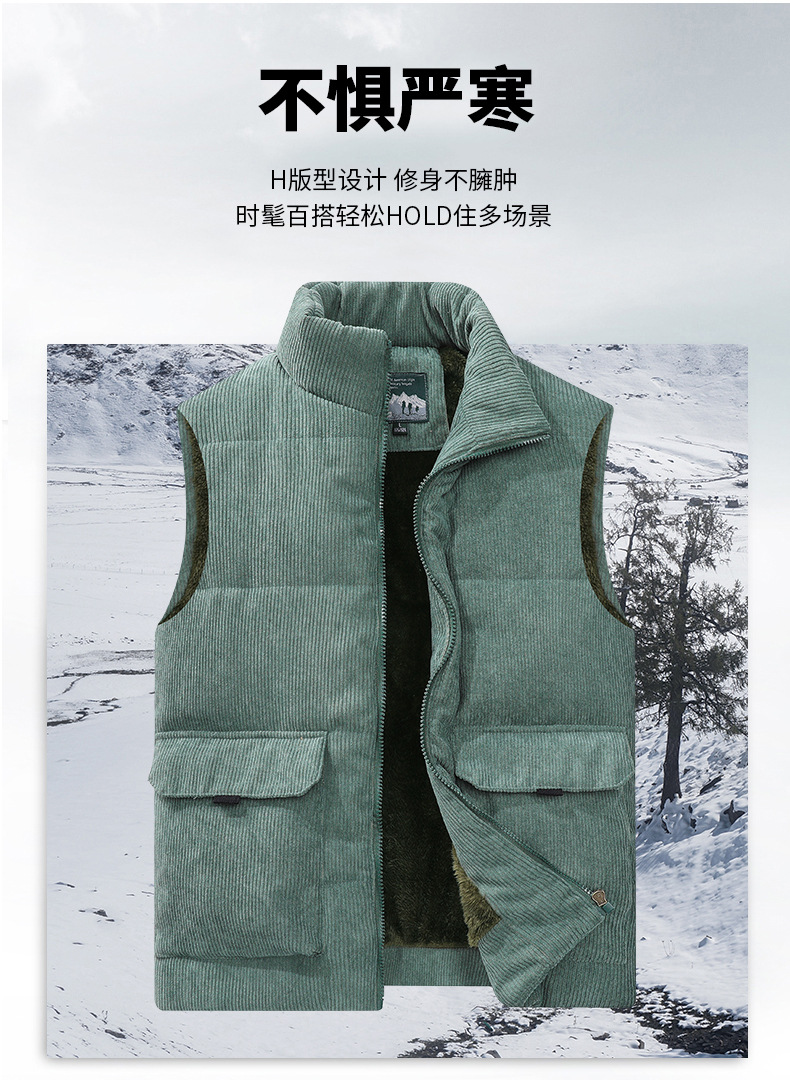 남자의 코듀로이 조끼 기모 두꺼운 조끼 플러스 사이즈 칼라 조끼 멀티 포켓 도구 다운 면 조끼 유행스토어 가기