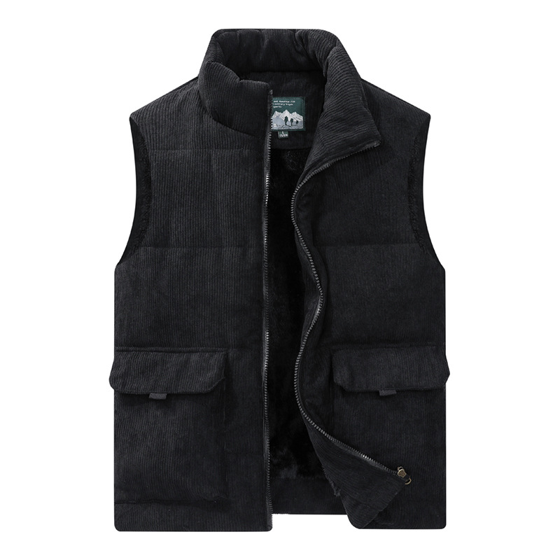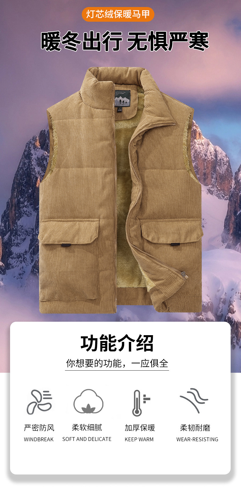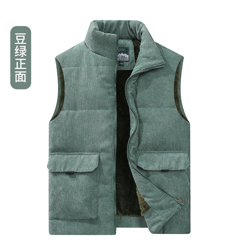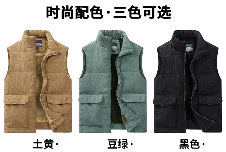 남자의 코듀로이 조끼 기모 두꺼운 조끼 플러스 사이즈 칼라 조끼 멀티 포켓 도구 다운 면 조끼 유행