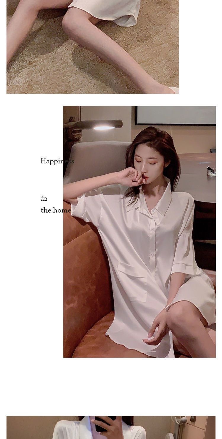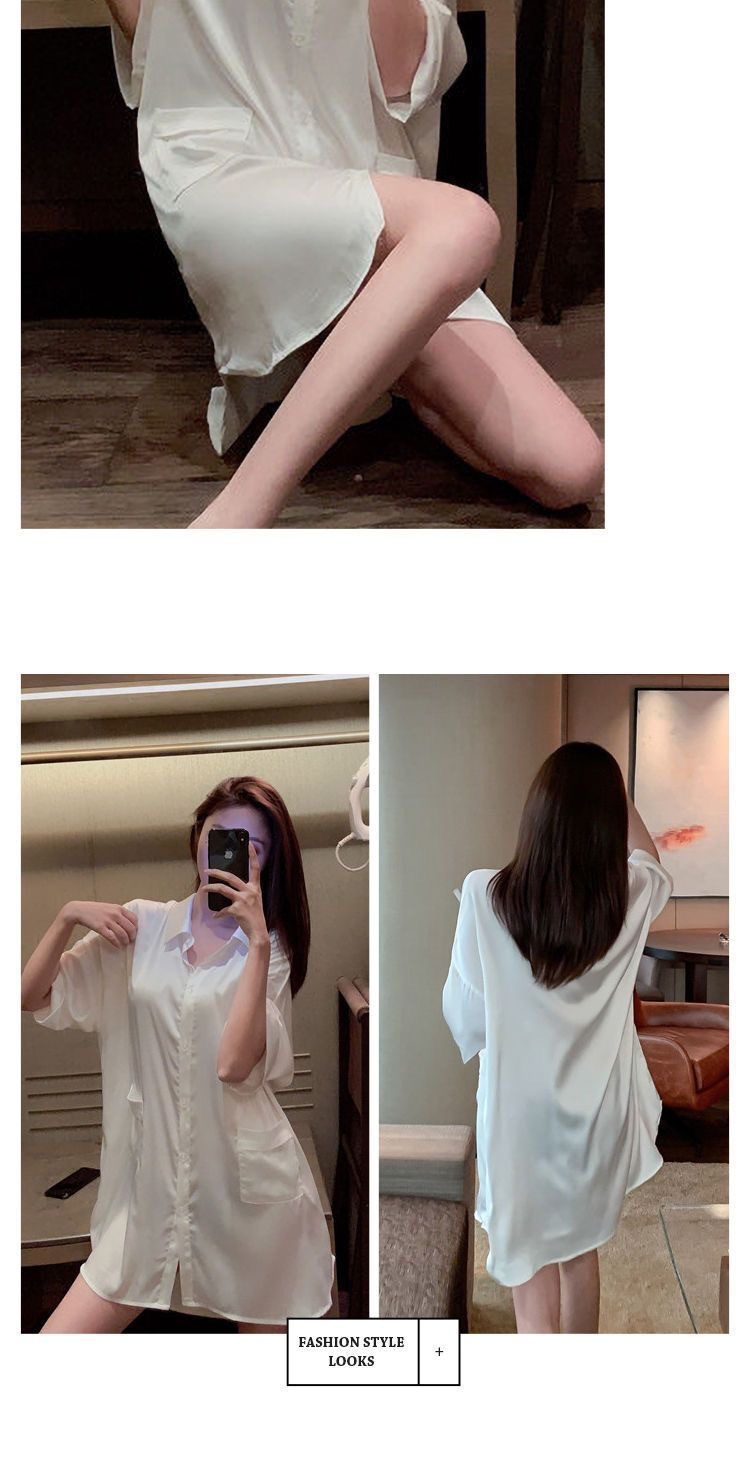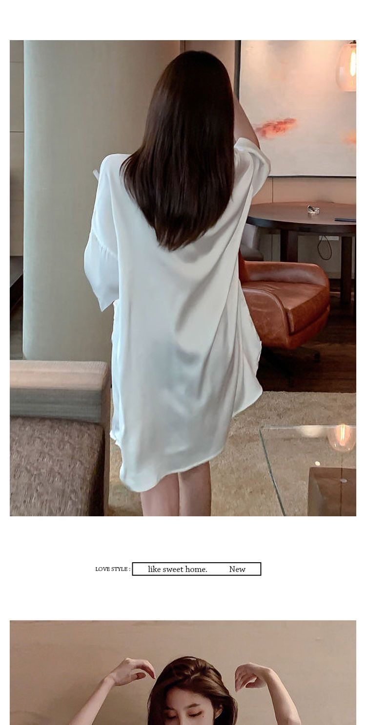 2023 잠옷 여자의 봄과 여름 얼음 실크 섹시한 얇은 남자 친구 스타일 흰색 셔츠 인터넷 인기 중간 길이 실크 모조 잠옷스토어 가기