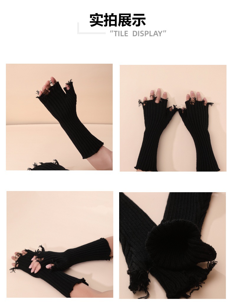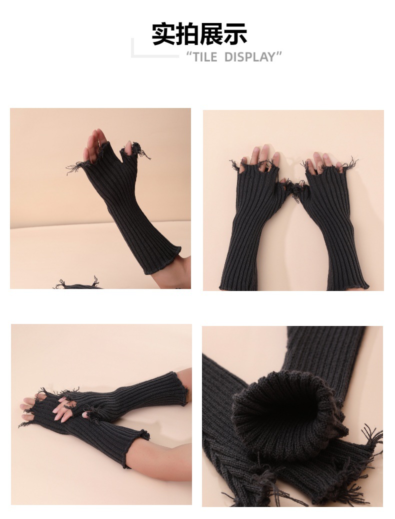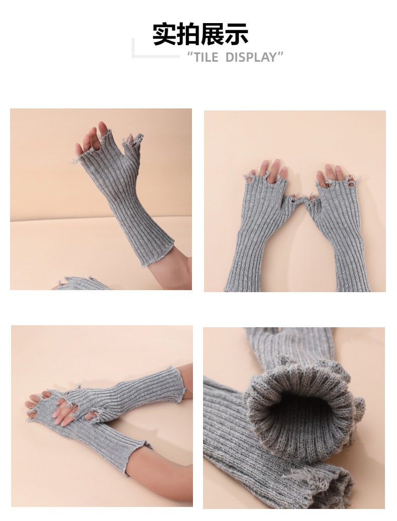 가을과 겨울 새로운 패션 개인화 된 구멍 니트 반 손가락 장갑스토어 가기