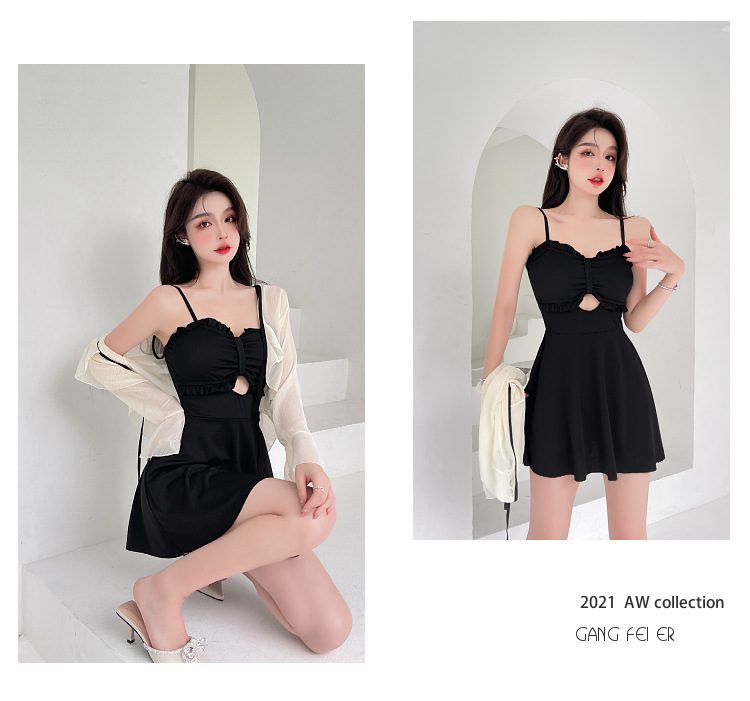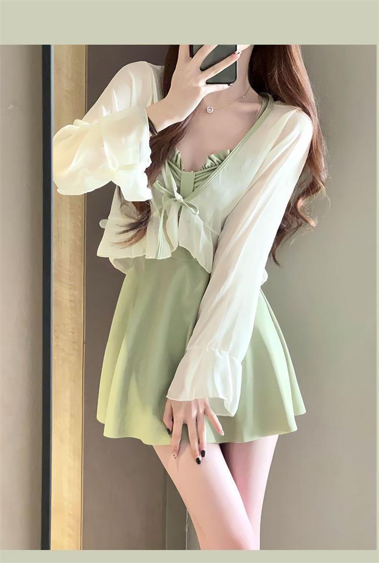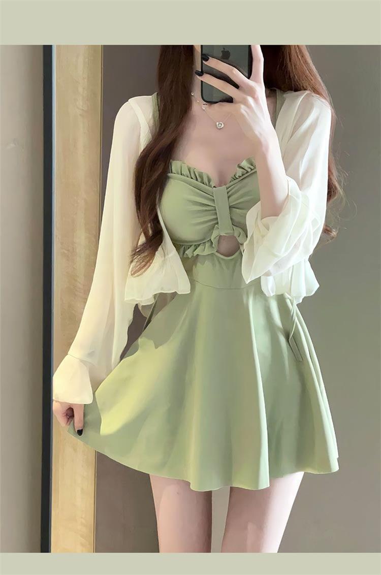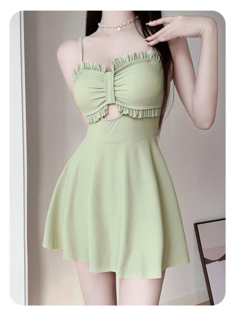 조절 가능한 어깨끈 투피스 아보카도 그린 수영복, 여성스러운 새로운 스타일의 보수적인 슬림 원피스 온천 수영복스토어 가기