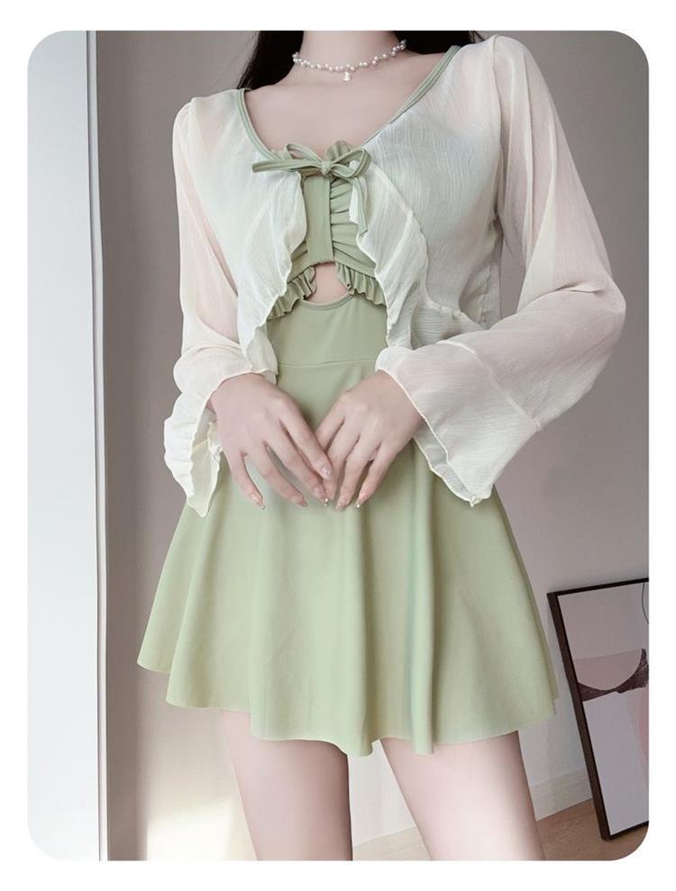 조절 가능한 어깨끈 투피스 아보카도 그린 수영복, 여성스러운 새로운 스타일의 보수적인 슬림 원피스 온천 수영복