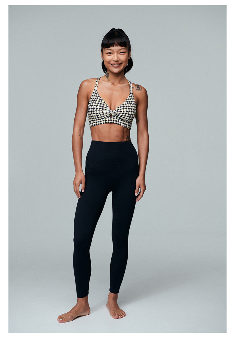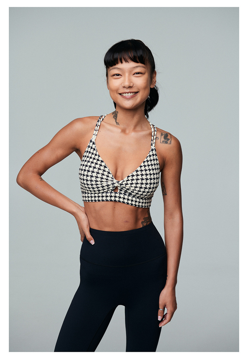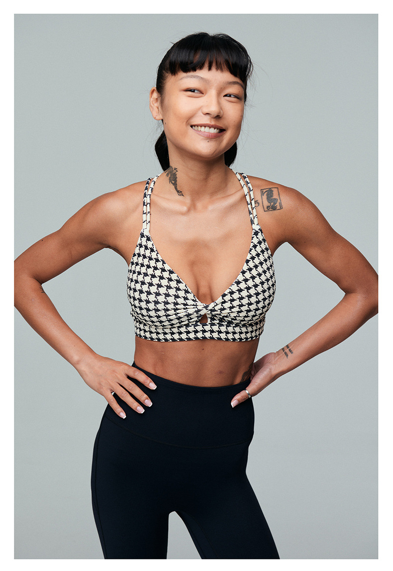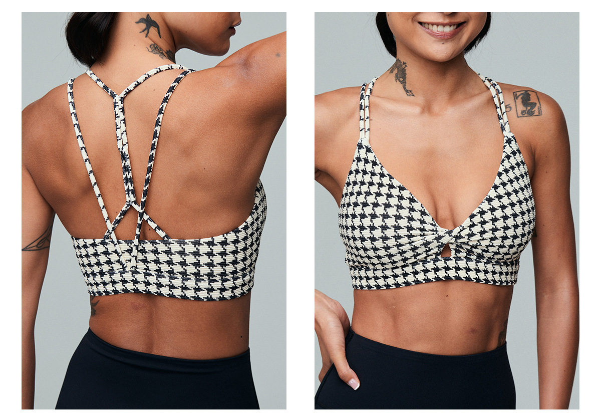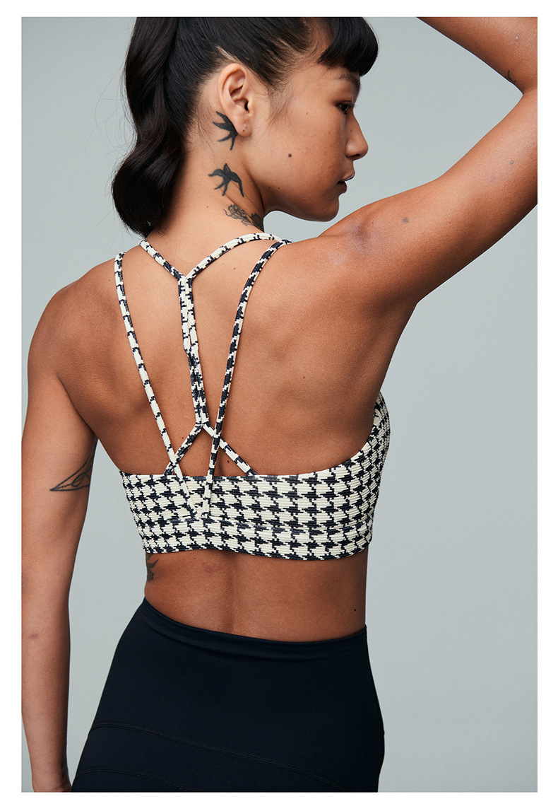 블랙 스트라이프 프린트 요가복, 푸쉬업 충격방지 스포츠 브라, 섹시한 크로스 스트랩, 아름다운 등 라인 브라, 패드 포함스토어 가기