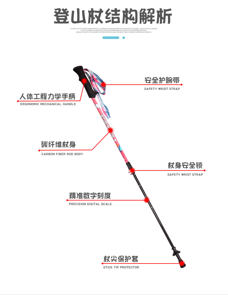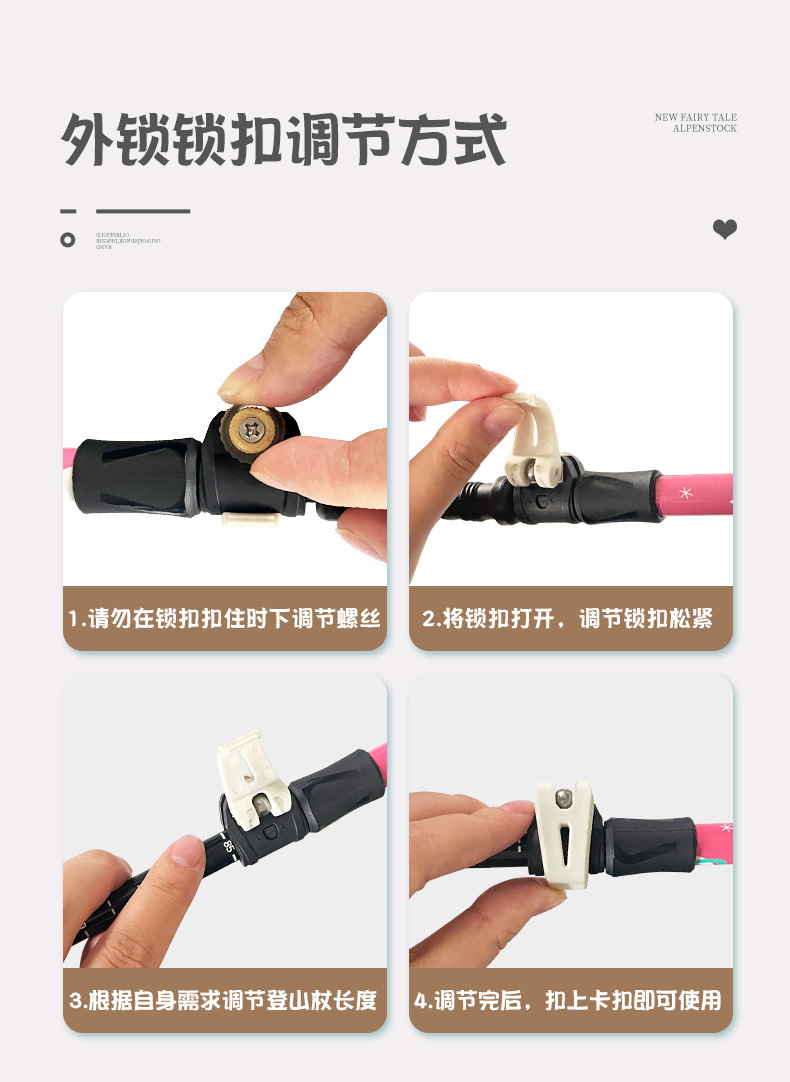 로빈슨 어린이 알펜스톡 탄소 섬유 외부 잠금 장치 초경량 짧은 외부 잠금 장치 휴대용 십대 소년 소녀 지팡이