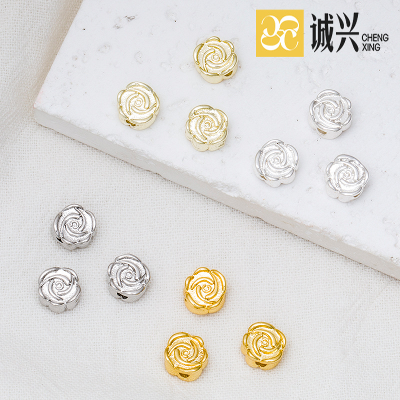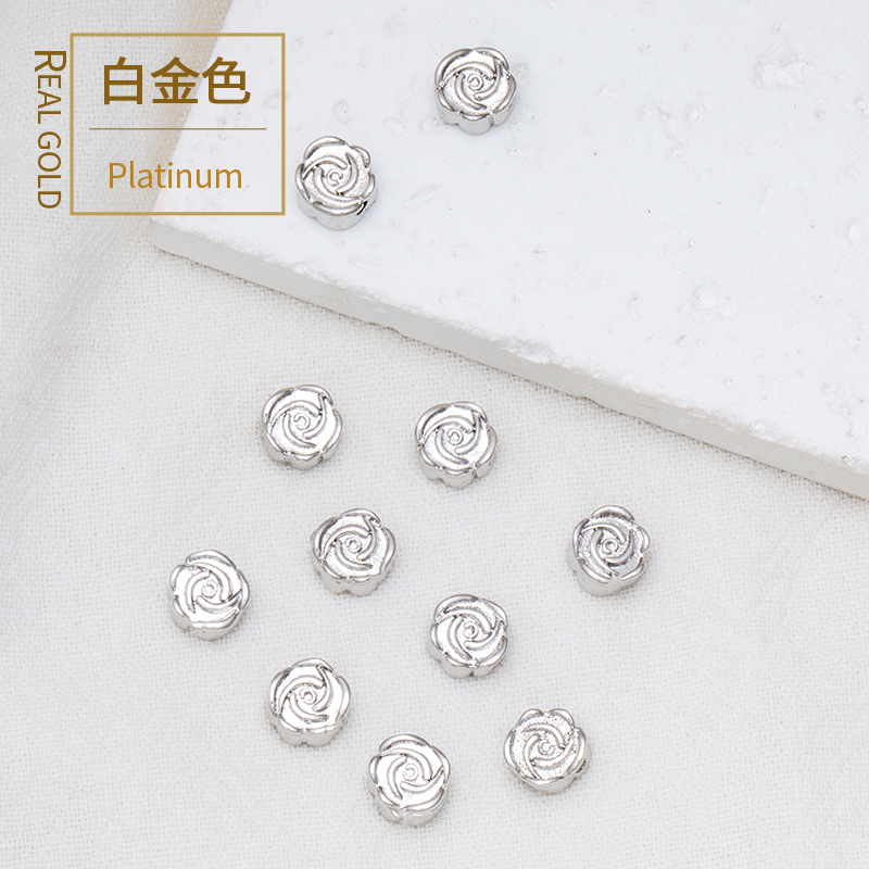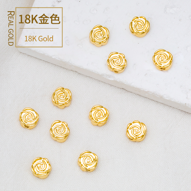 18K 패키지 골드 컬러 로즈 복숭아 꽃 구슬 구리 도금 리얼 골드 느슨한 구슬 페르시 DIY 팔찌 목걸이 액세서리