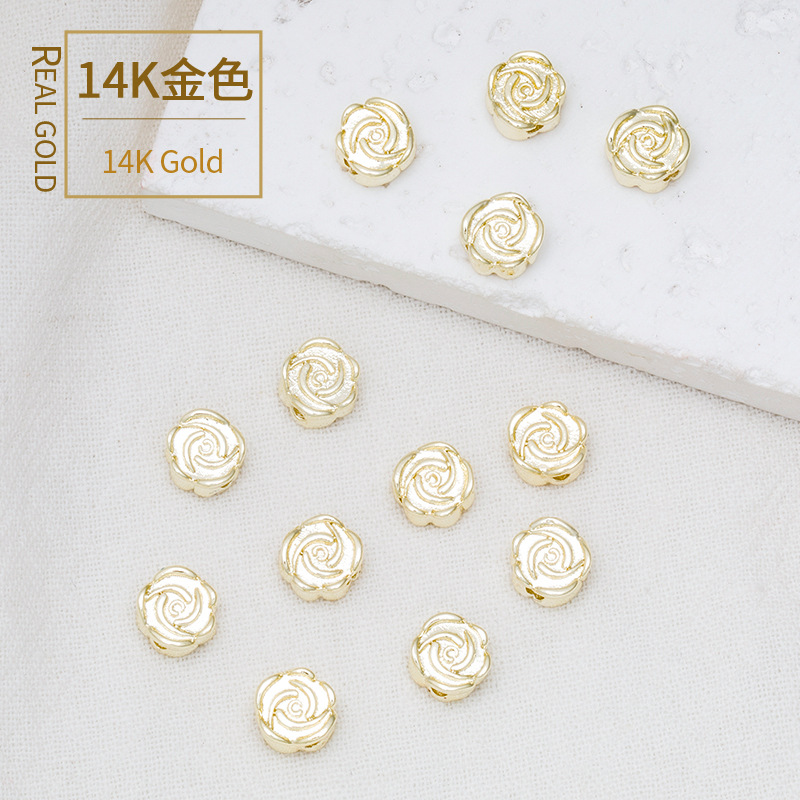 18K 패키지 골드 컬러 로즈 복숭아 꽃 구슬 구리 도금 리얼 골드 느슨한 구슬 페르시 DIY 팔찌 목걸이 액세서리스토어 가기