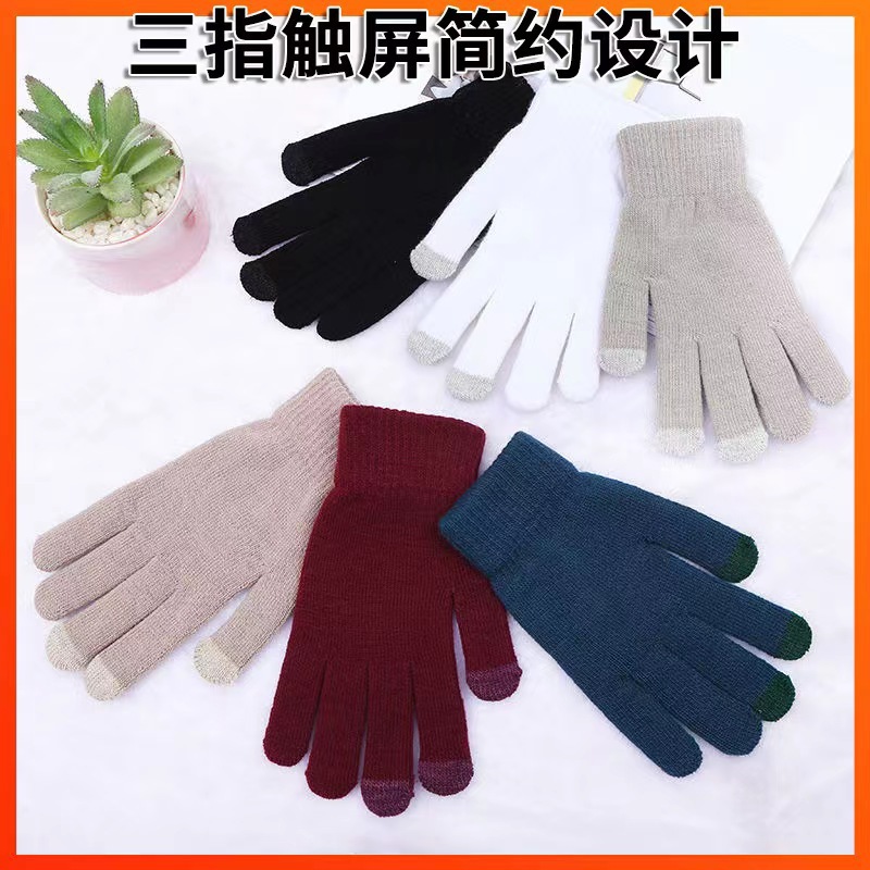 재고 도매 처리 프리 사이즈 남성과 여성의 혼합 니트 울 터치 스크린 따뜻한 장갑 성인 장갑 색상