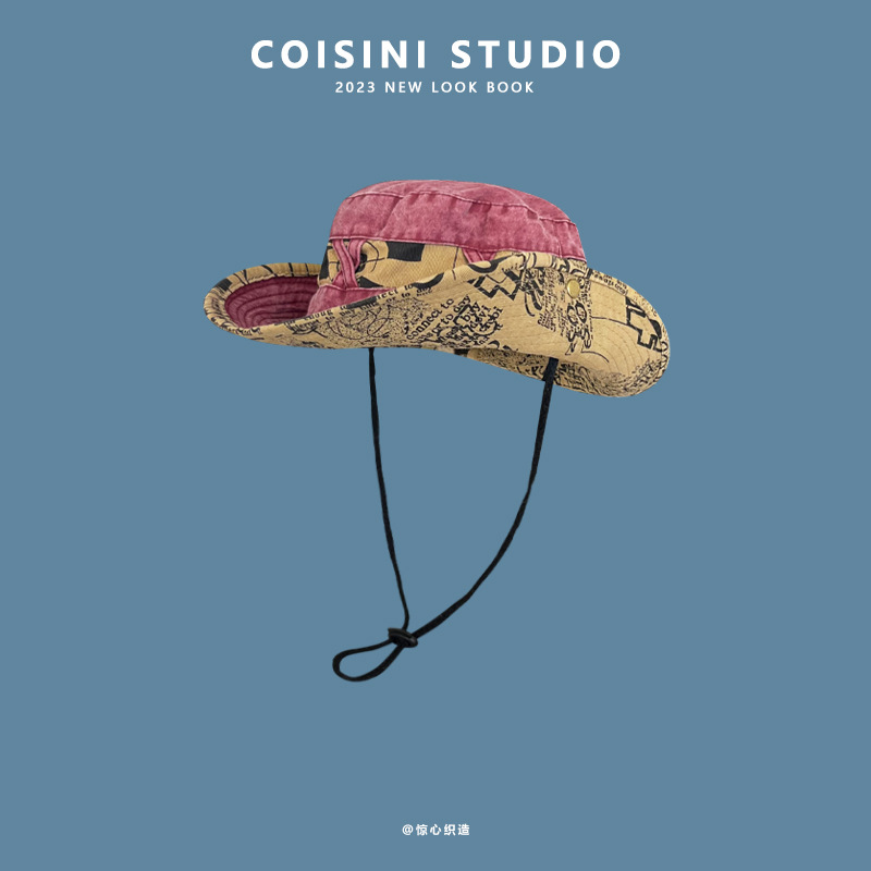 개인화 된 대조 색상 편지 어부 모자 일본식 스트리트 패션 브랜드 여성의 모든 경기 등산 모자 야외 캠핑 웨스턴 카우보이 모자스토어 가기