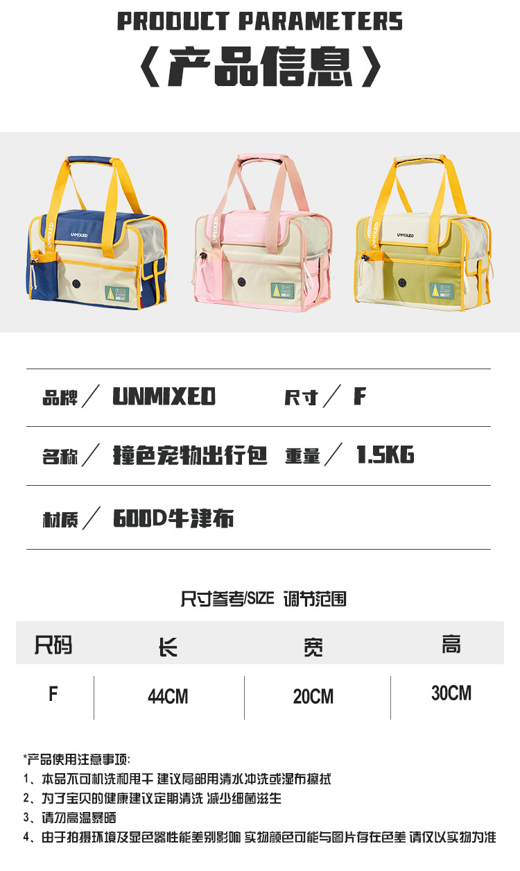 UNMIXED 한국식 간단한 애완 동물 외출 가방 자동차 가방 개 고양이 중형 및 소형 개 대용량 더러움 방지스토어 가기