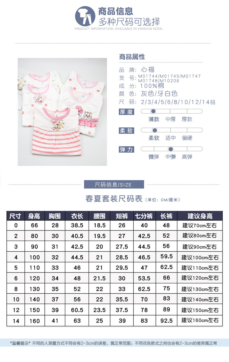 신푸 아동 잠옷 순면 홈웨어 여아 속옷 소중대형 어린이 여아용 에어컨 셔츠 여름 얇은 만화 디자인