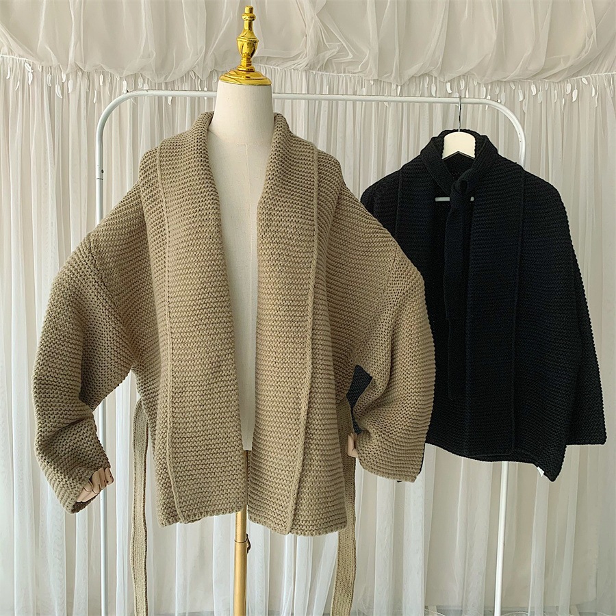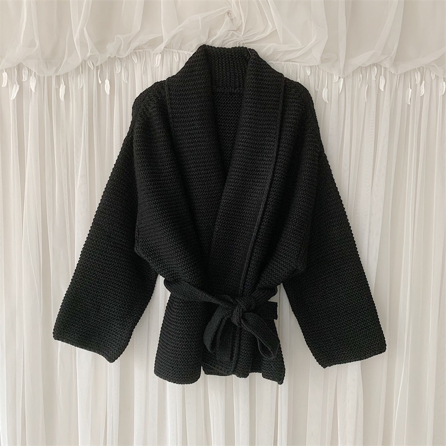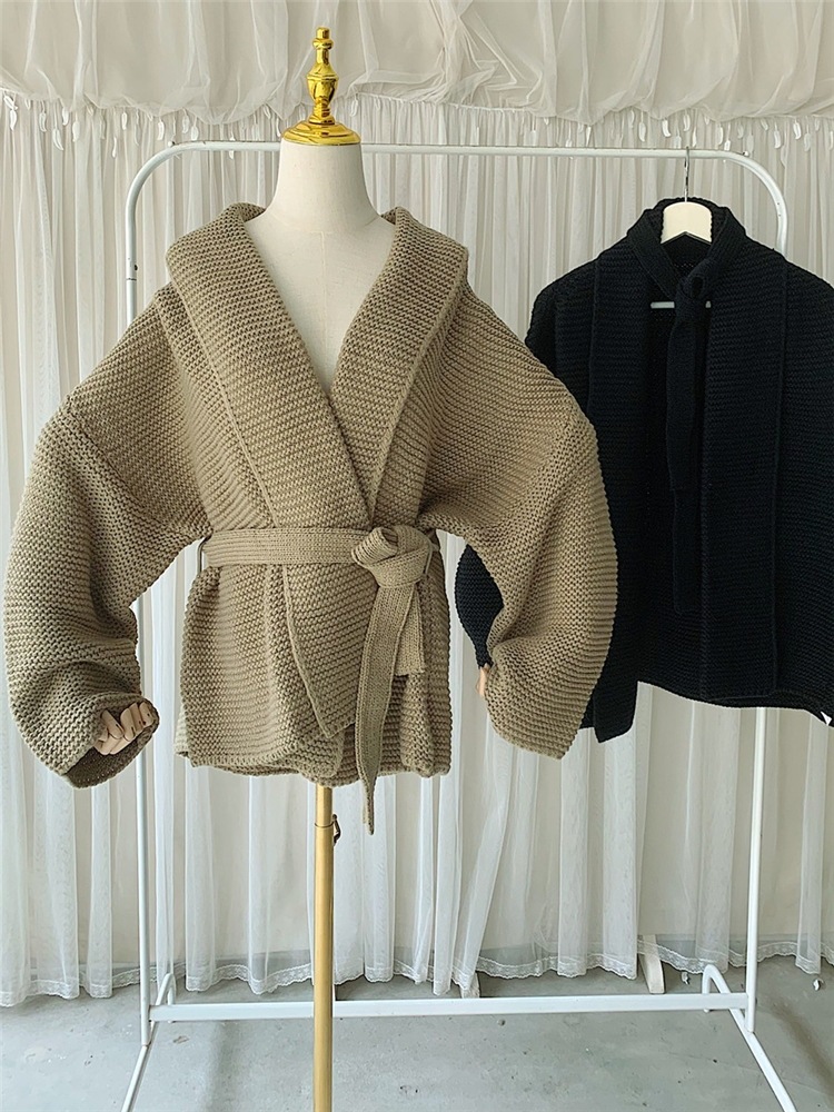 유럽과 미국 대외 무역 플러스 사이즈 프랑스 V-넥 스웨터 아마존 새로운 재킷 허리 스트랩 두꺼운 니트 카디건 여성스토어 가기