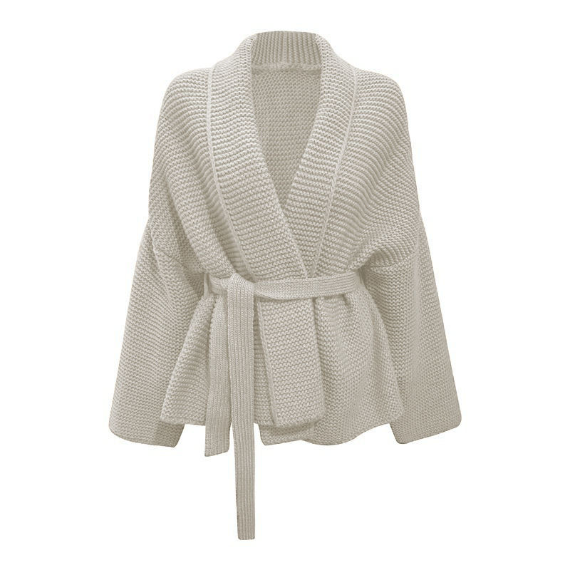 유럽과 미국 대외 무역 플러스 사이즈 프랑스 V-넥 스웨터 아마존 새로운 재킷 허리 스트랩 두꺼운 니트 카디건 여성
