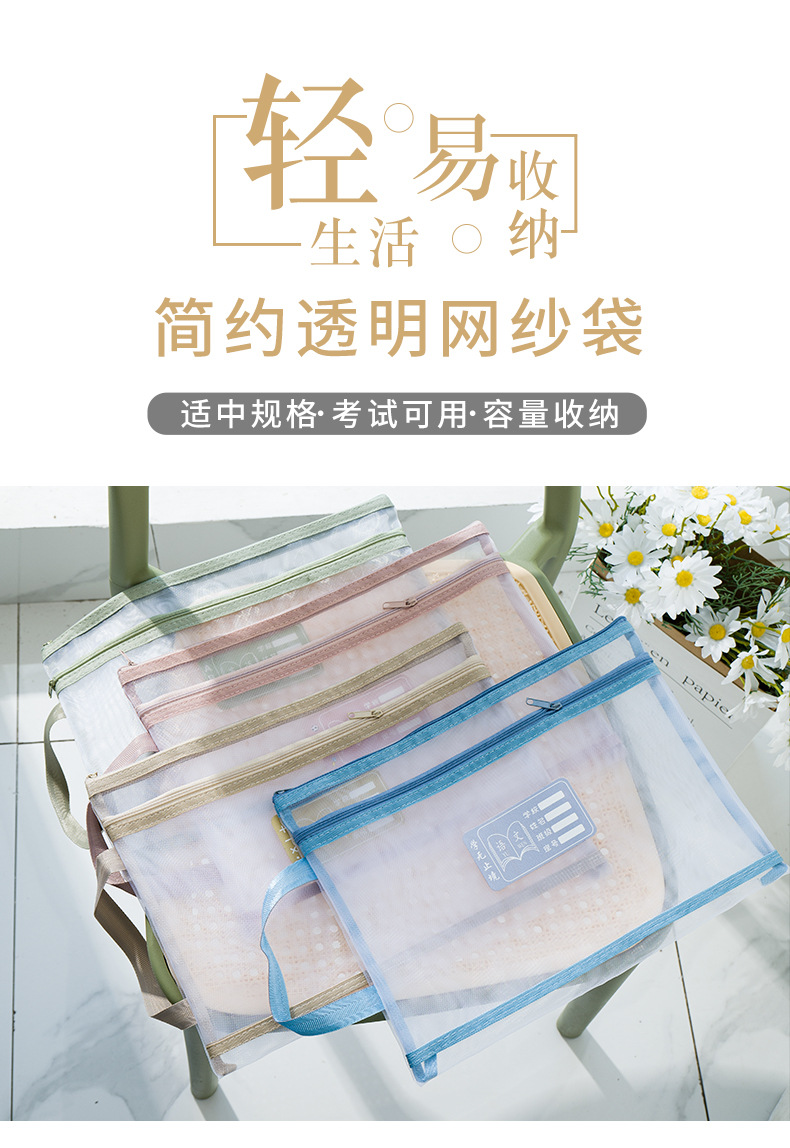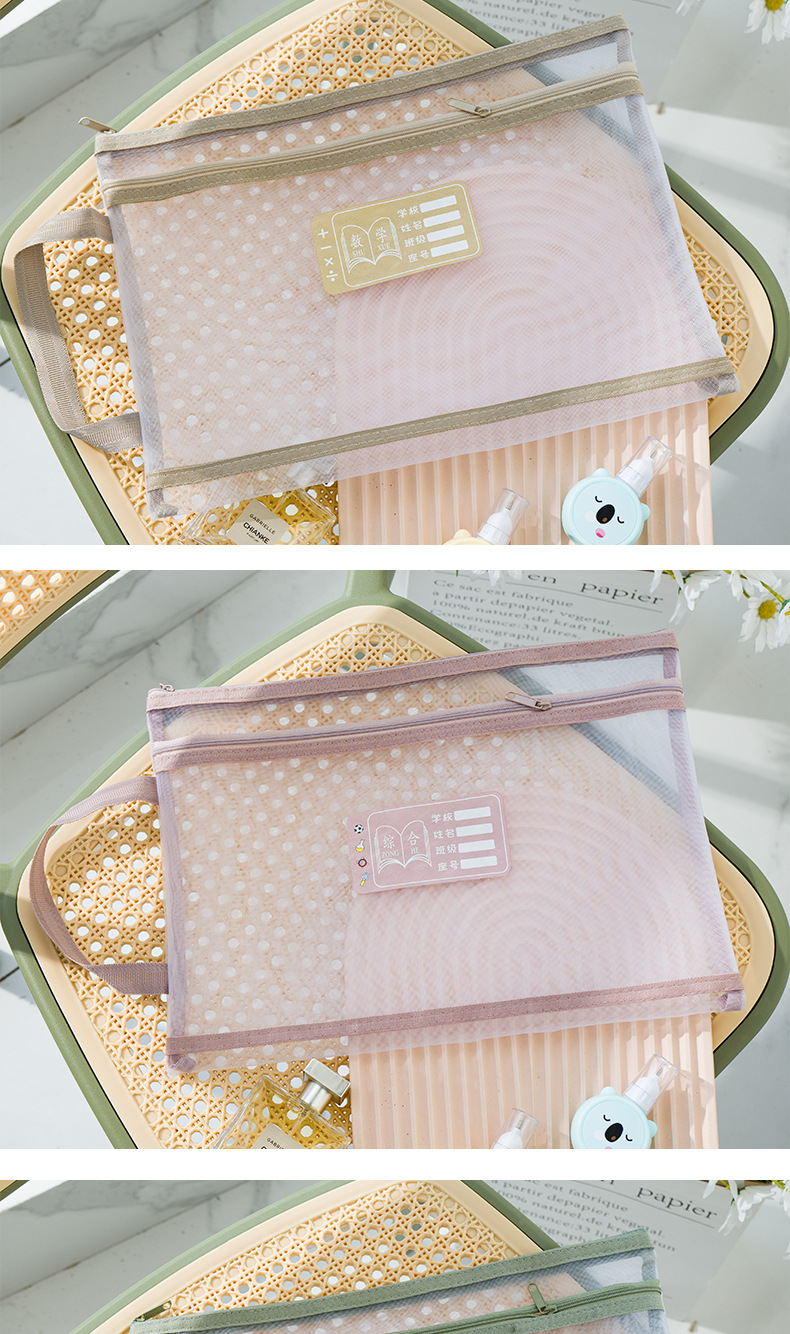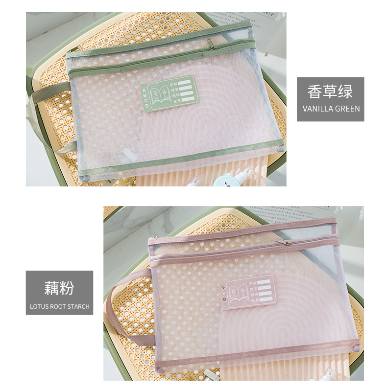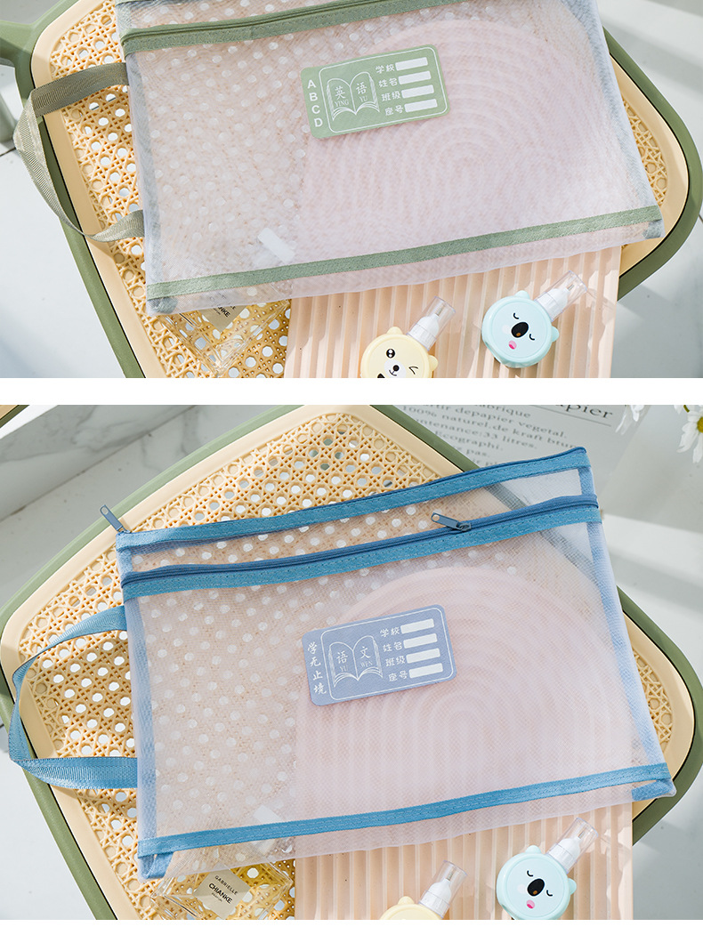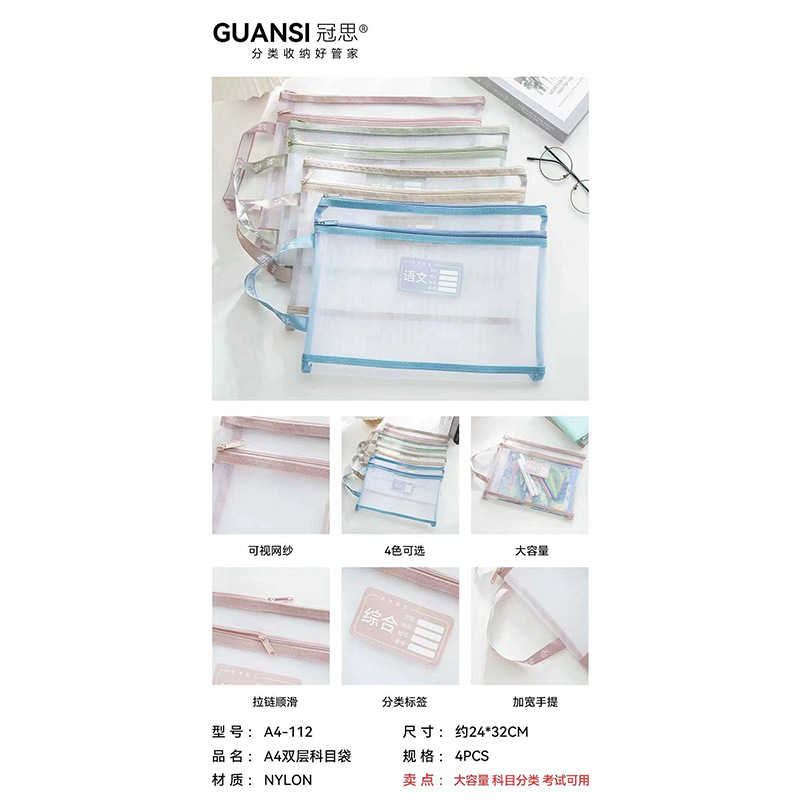 Guansi A4 과목 분류 문서 가방 초등학생을위한 투명 대용량 더블 지퍼 핸드백스토어 가기