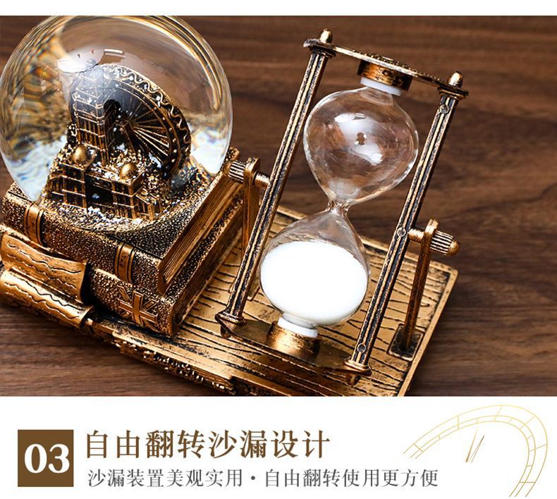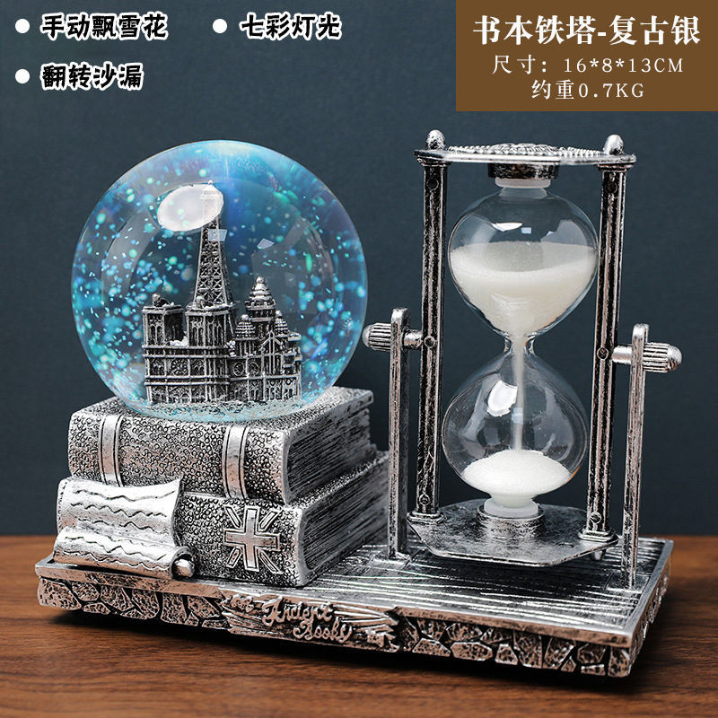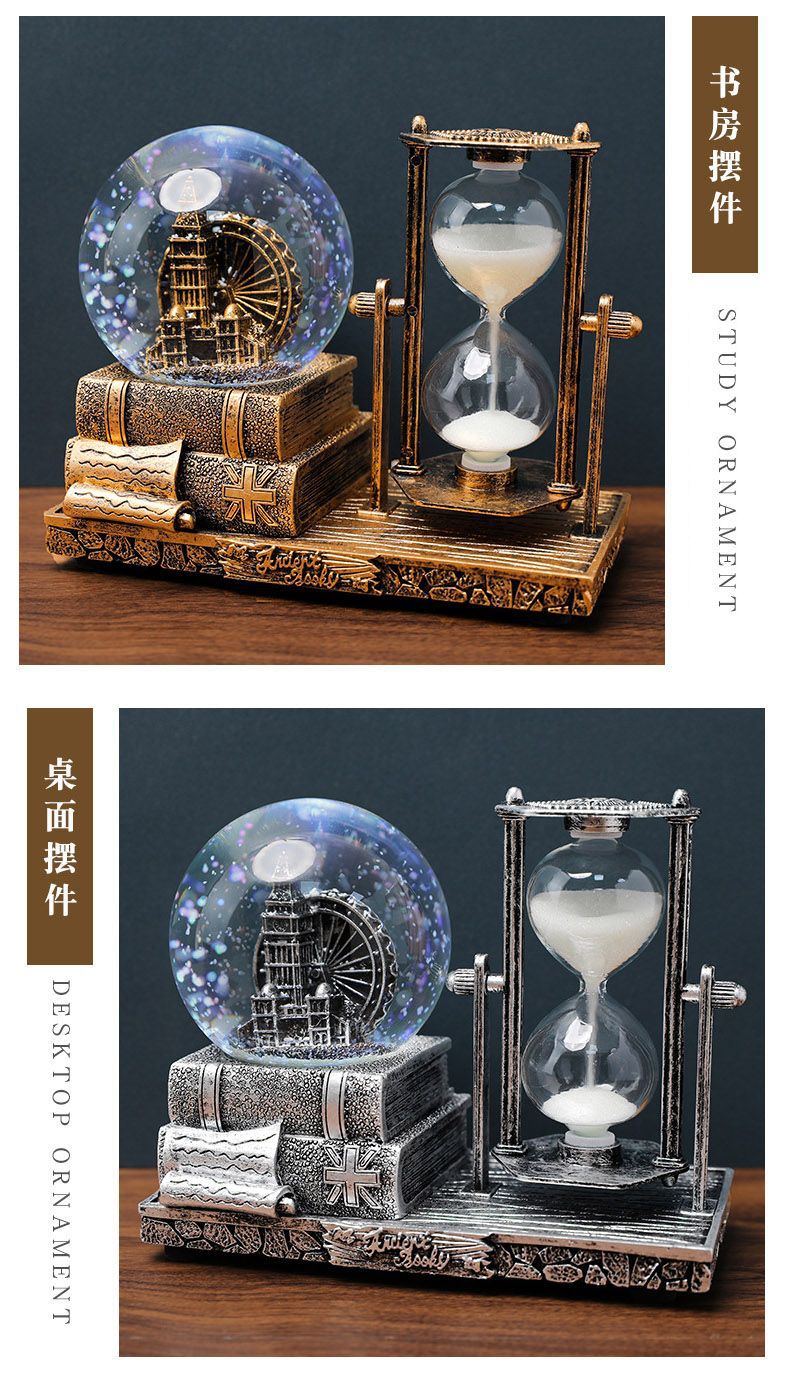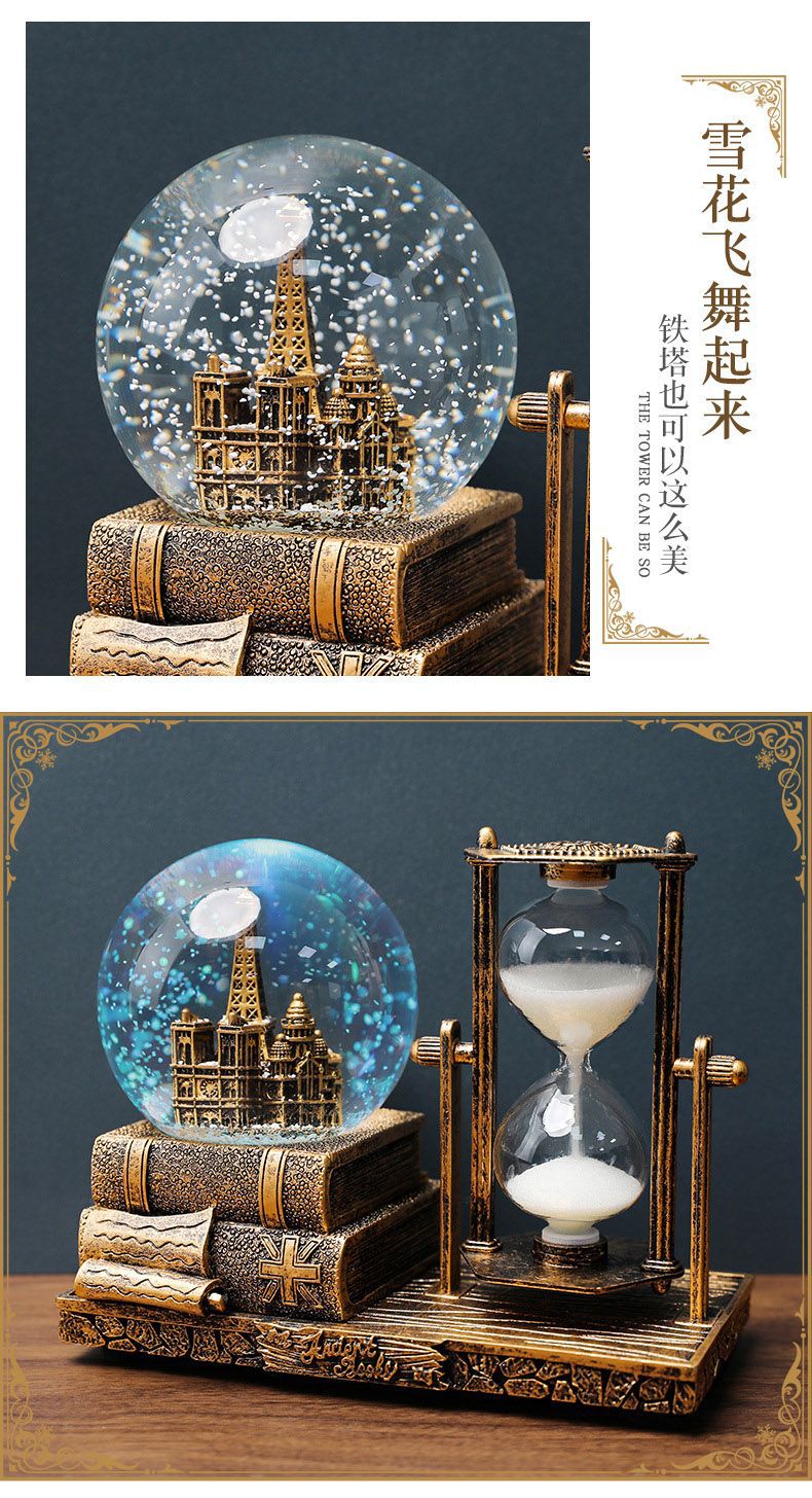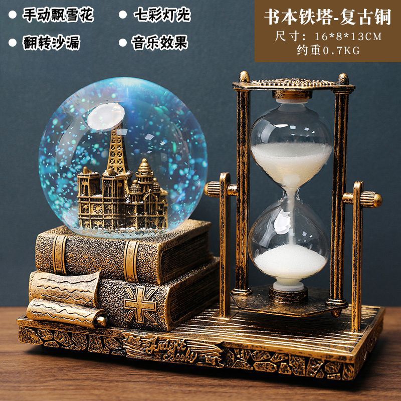 레트로 타워 모래 시계 타이밍 15 분 크리스탈 볼 뮤직 박스 빛나는 데스크탑 장식 학생 졸업 시즌 선물스토어 가기