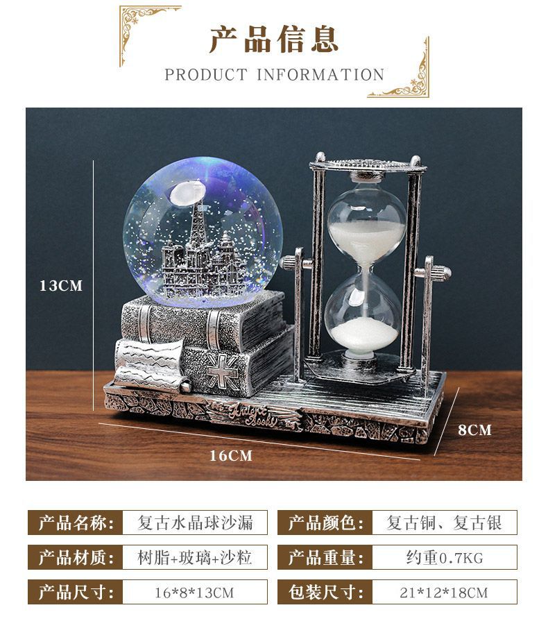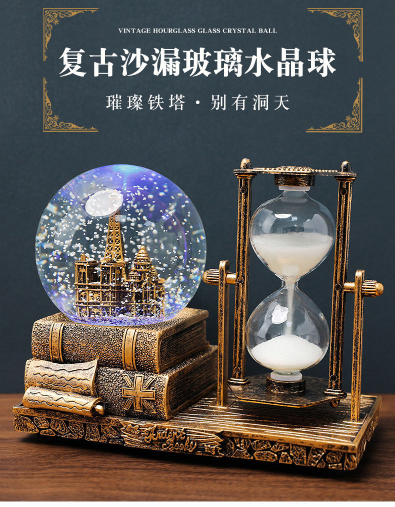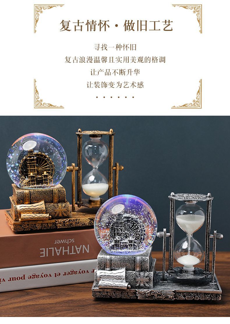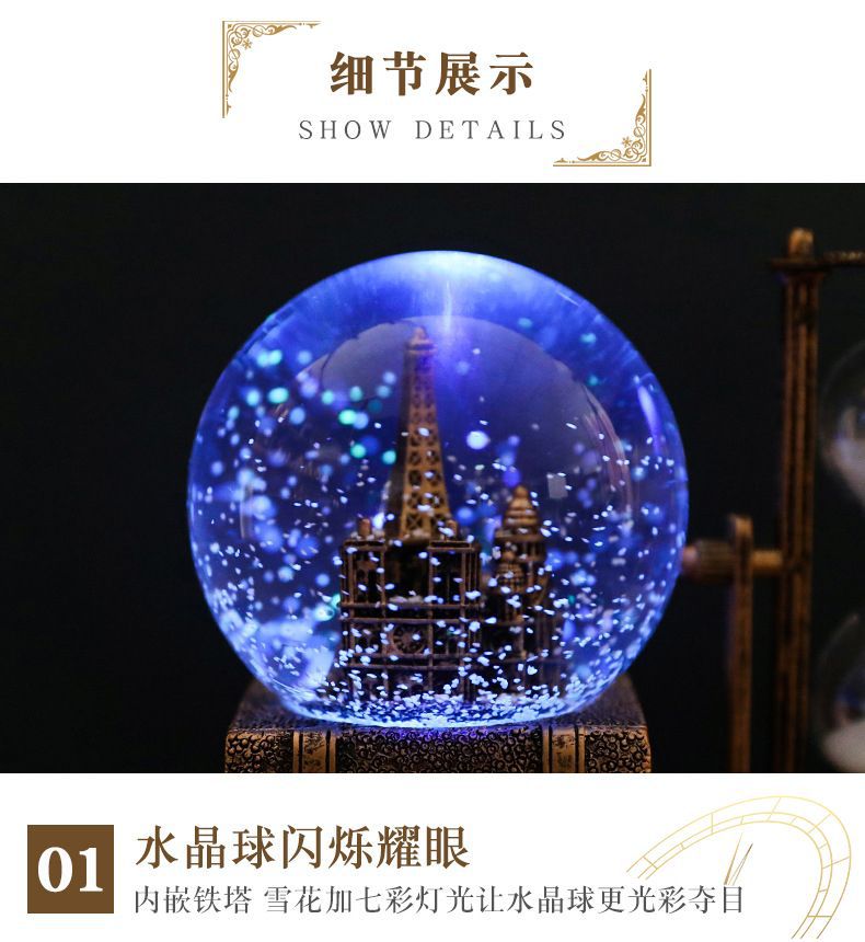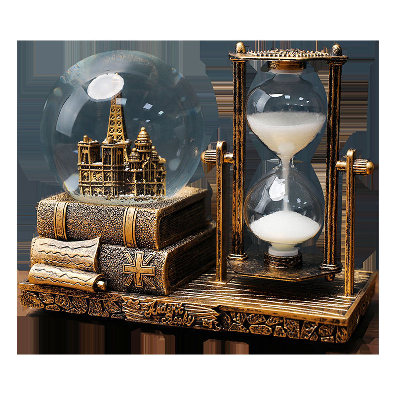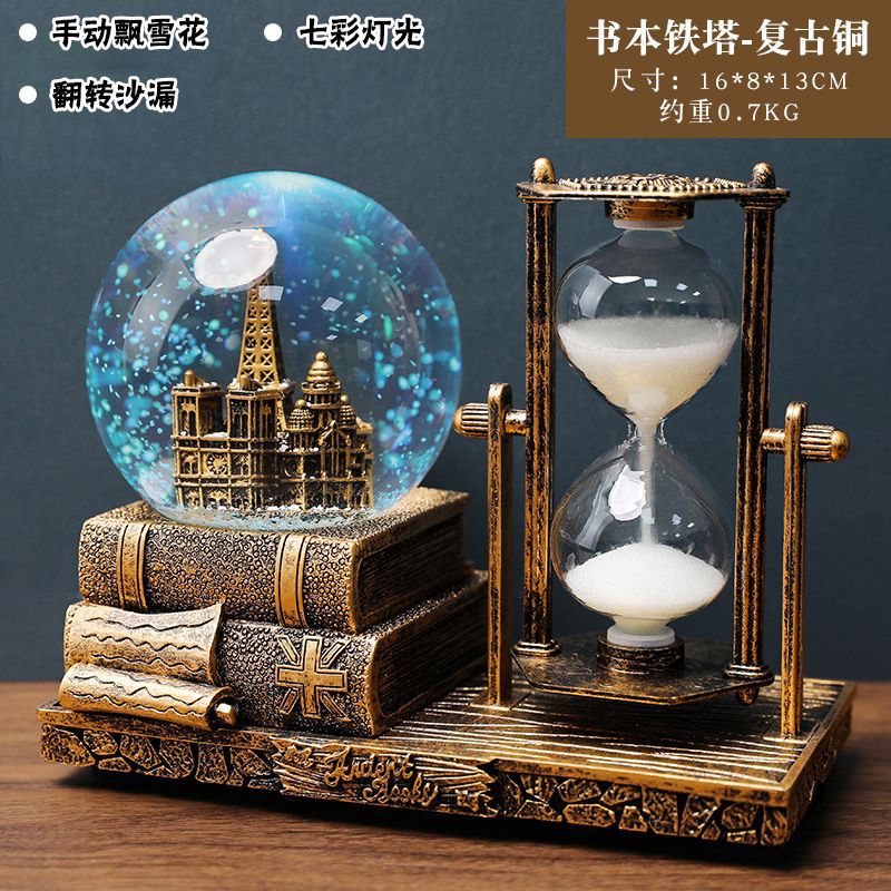 레트로 타워 모래 시계 타이밍 15 분 크리스탈 볼 뮤직 박스 빛나는 데스크탑 장식 학생 졸업 시즌 선물스토어 가기