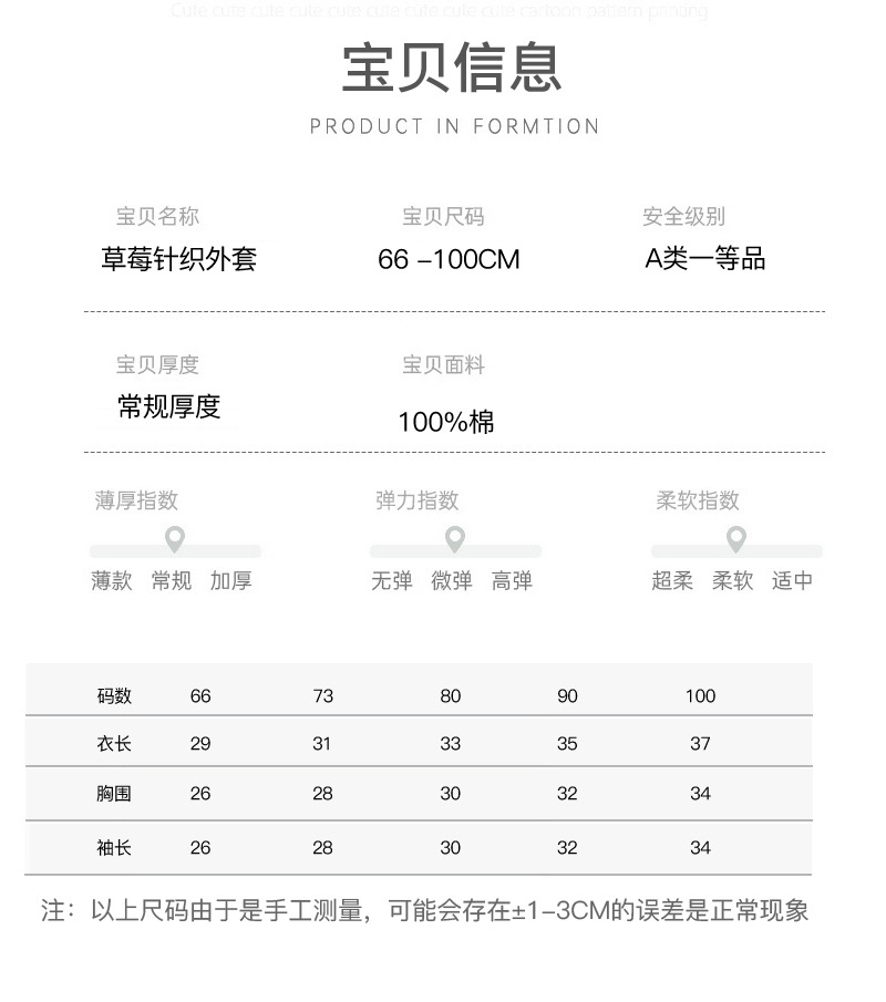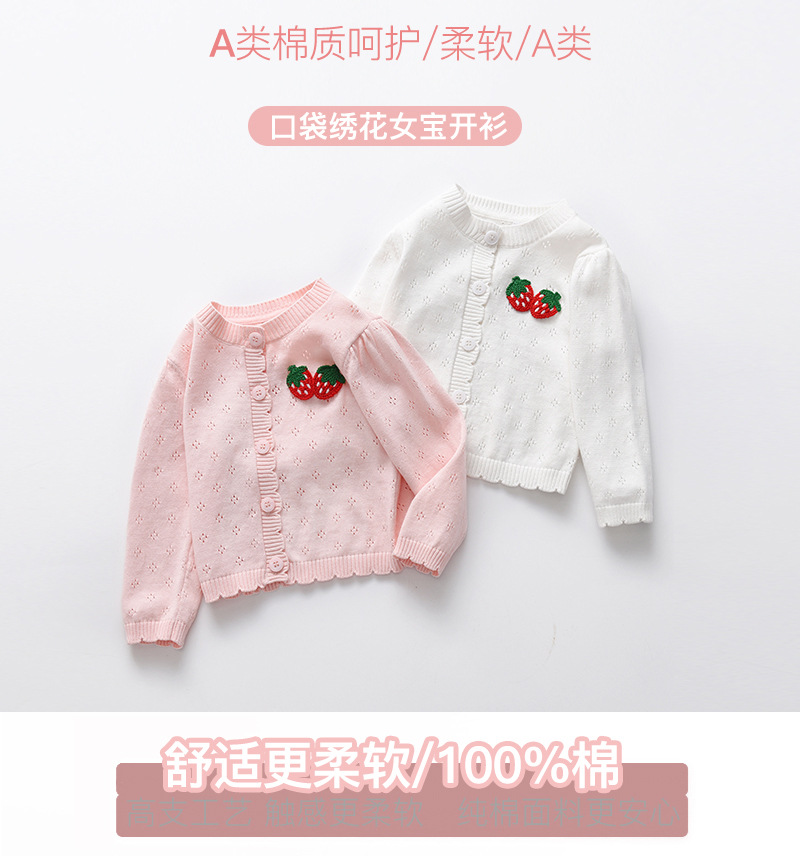 아기 스웨터 코트 봄과 가을 니트 카디건 아기 소녀 긴팔 코트 딸기 다목적 스웨터 100 일스토어 가기