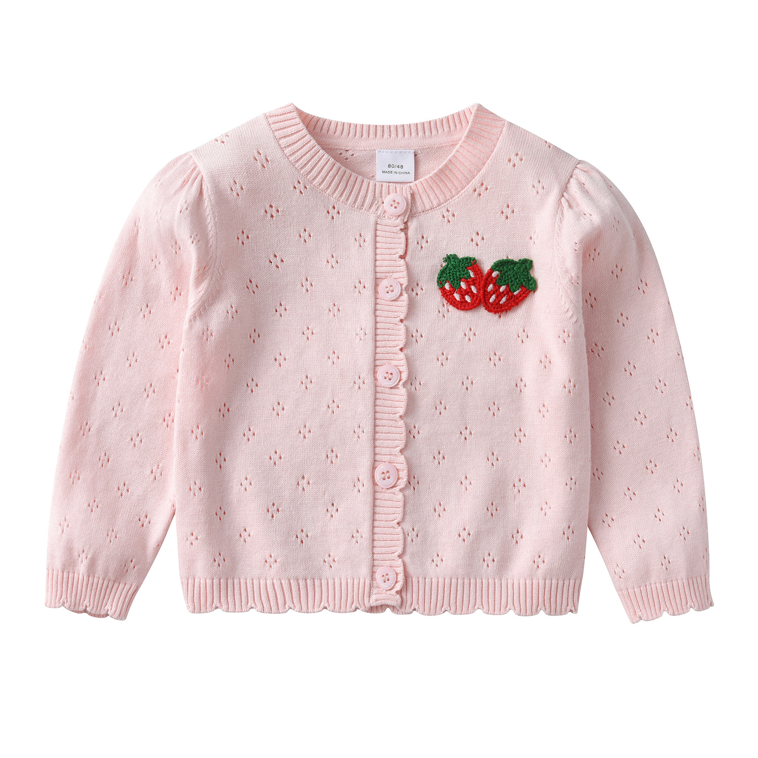 아기 스웨터 코트 봄과 가을 니트 카디건 아기 소녀 긴팔 코트 딸기 다목적 스웨터 100 일