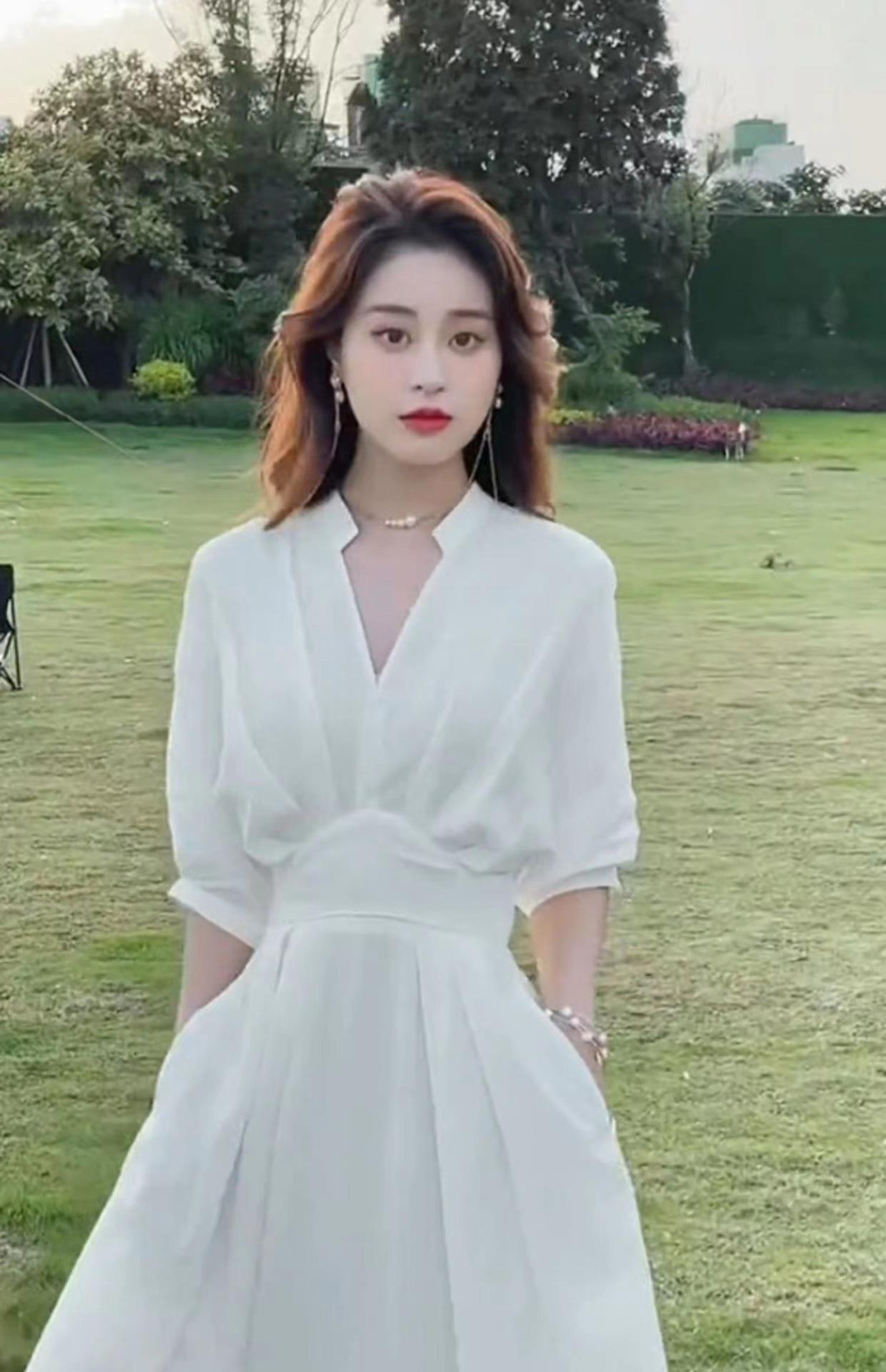 흰 셔츠 원피스 2024 여름 차 휴식 프랑스 허리 슬리밍 요정 긴 원피스 여성의 기질