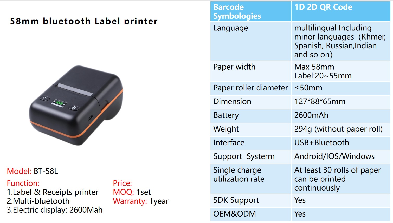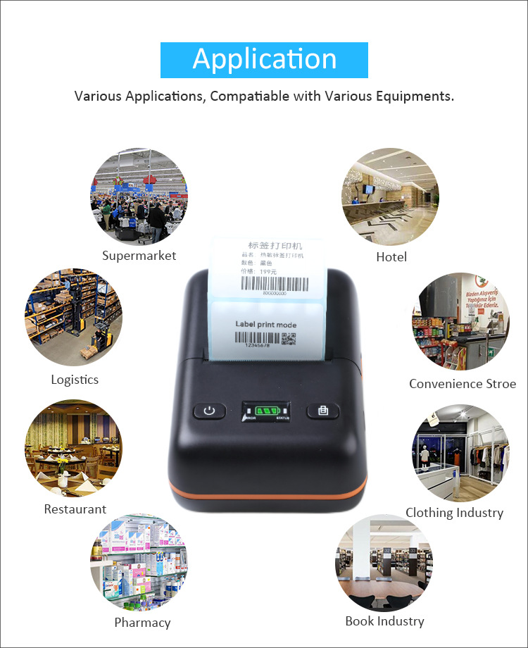 국경 핫 세일 58mm 라벨 프린터 스티커 프린터 블루투스 열 바코드 가격 프린터스토어 가기