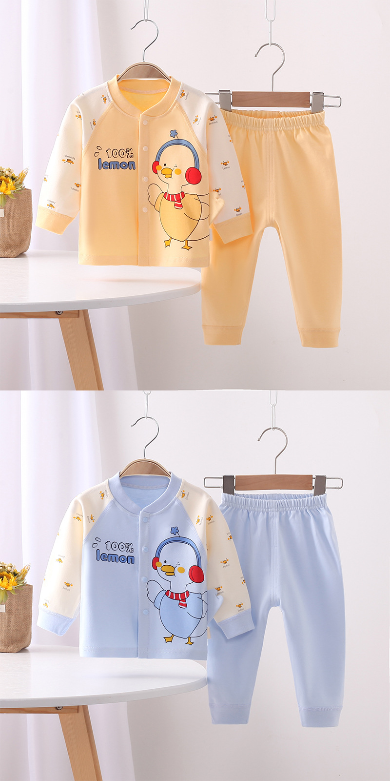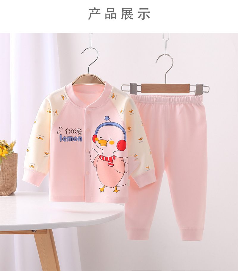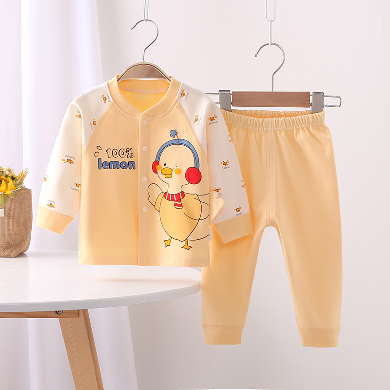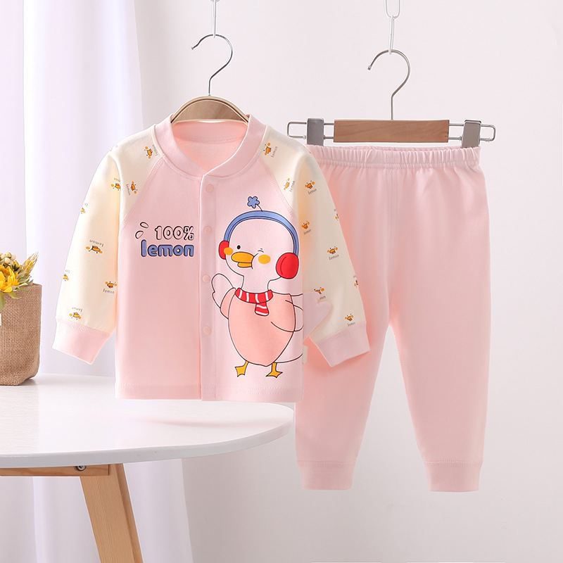가을과 겨울 아기 속옷 세트 아기 만화 가을 옷 긴 소매 뼈없는 도어 투-도어 2 종 세트 사계절 가정 옷스토어 가기