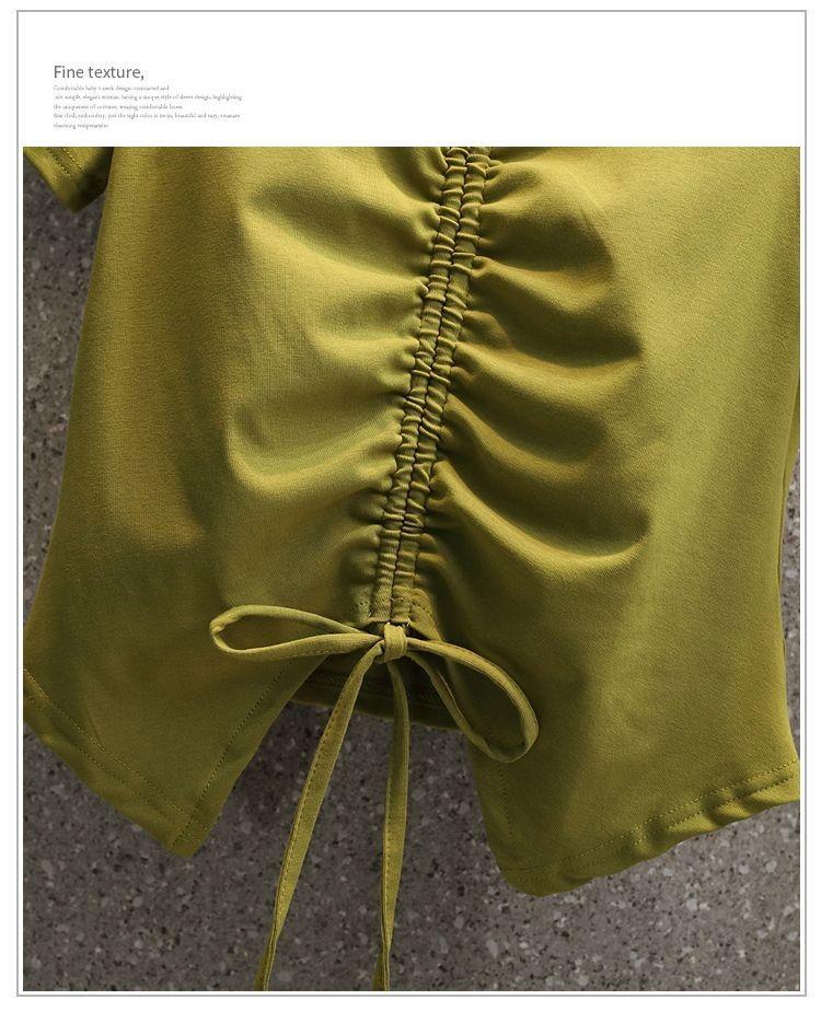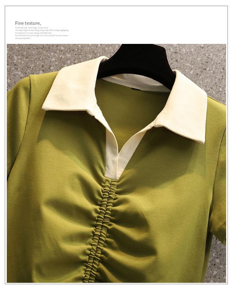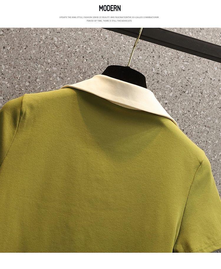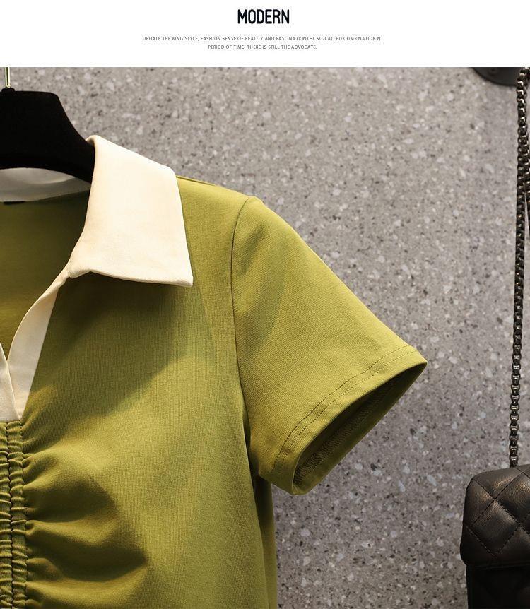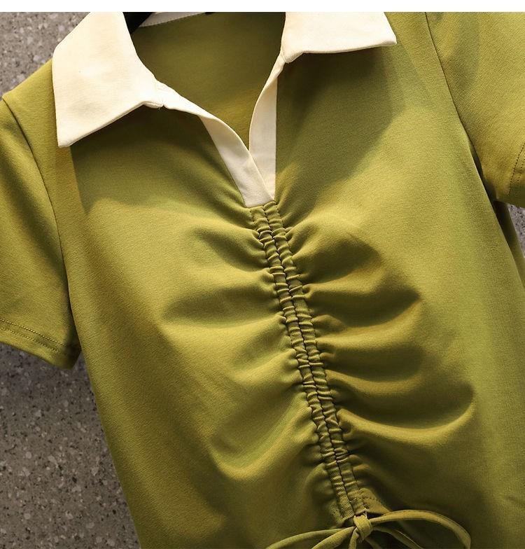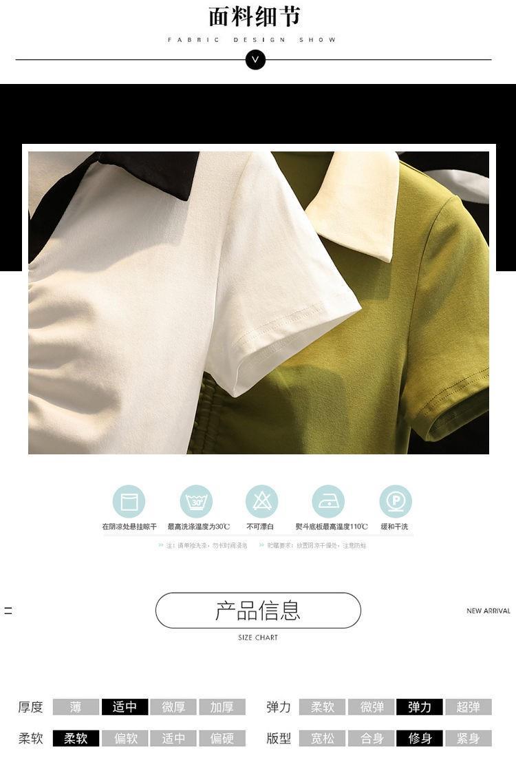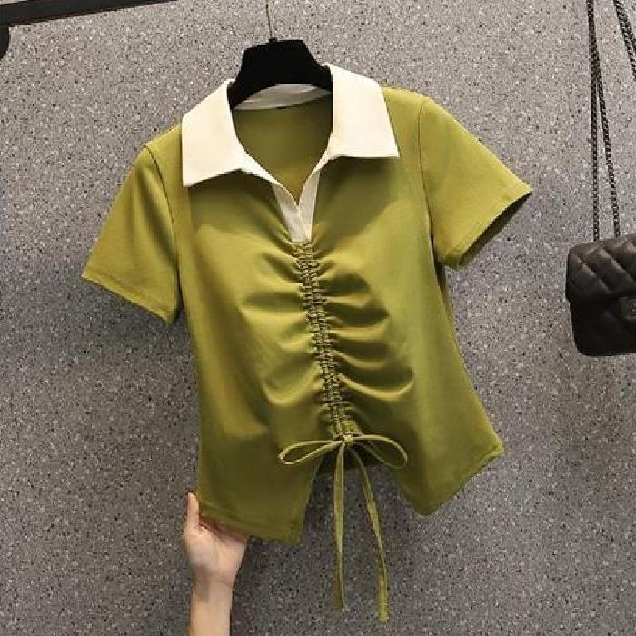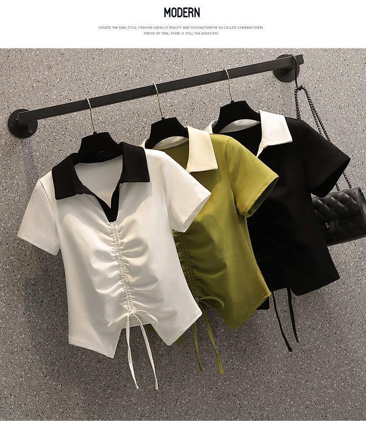 2025 여름 패션 플러스 사이즈 여성 의류 패셔너블한 POLO 칼라 신상 슬리밍 불규칙 드로스트링 배색 티셔츠 상의스토어 가기