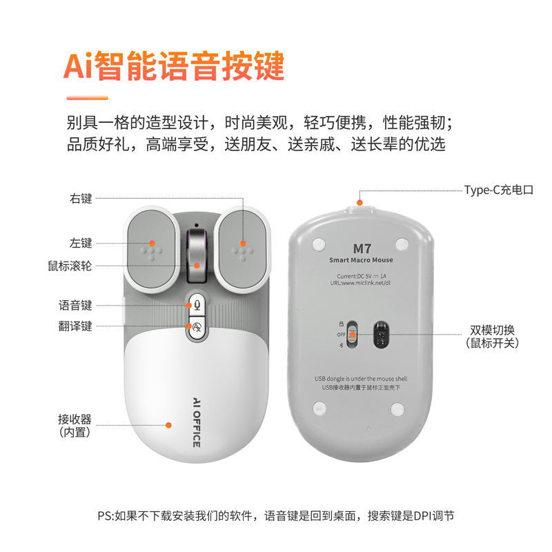 AI 지능형 음성 3모드 충전식 마우스 음성 제어 말하기 및 타이핑 중국어 및 영어 방언 번역 무선 마우스