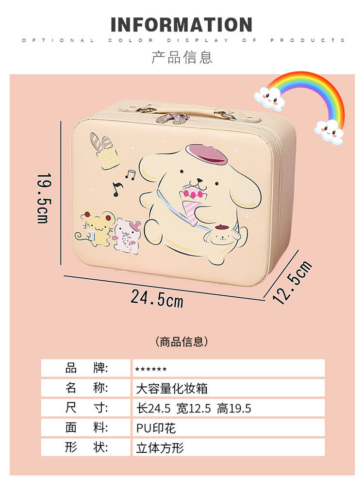 귀여운 만화 Kulomi 화장품 케이스 데스크탑 플러스 사이즈 PU 가죽 화장품 거울 보관함 휴대용 보관함