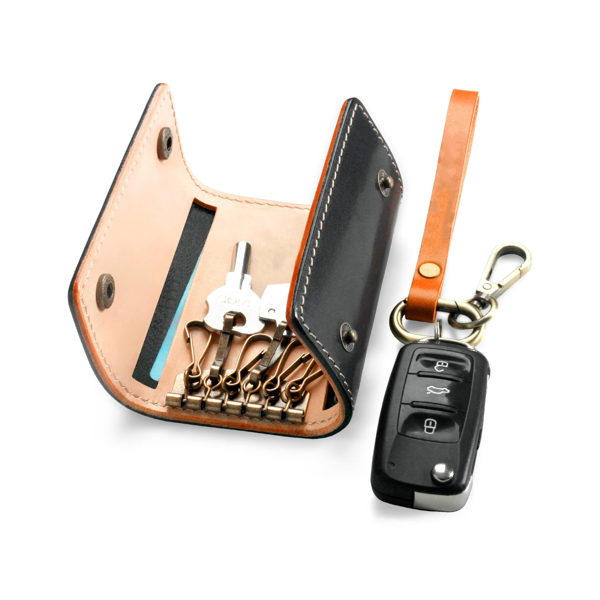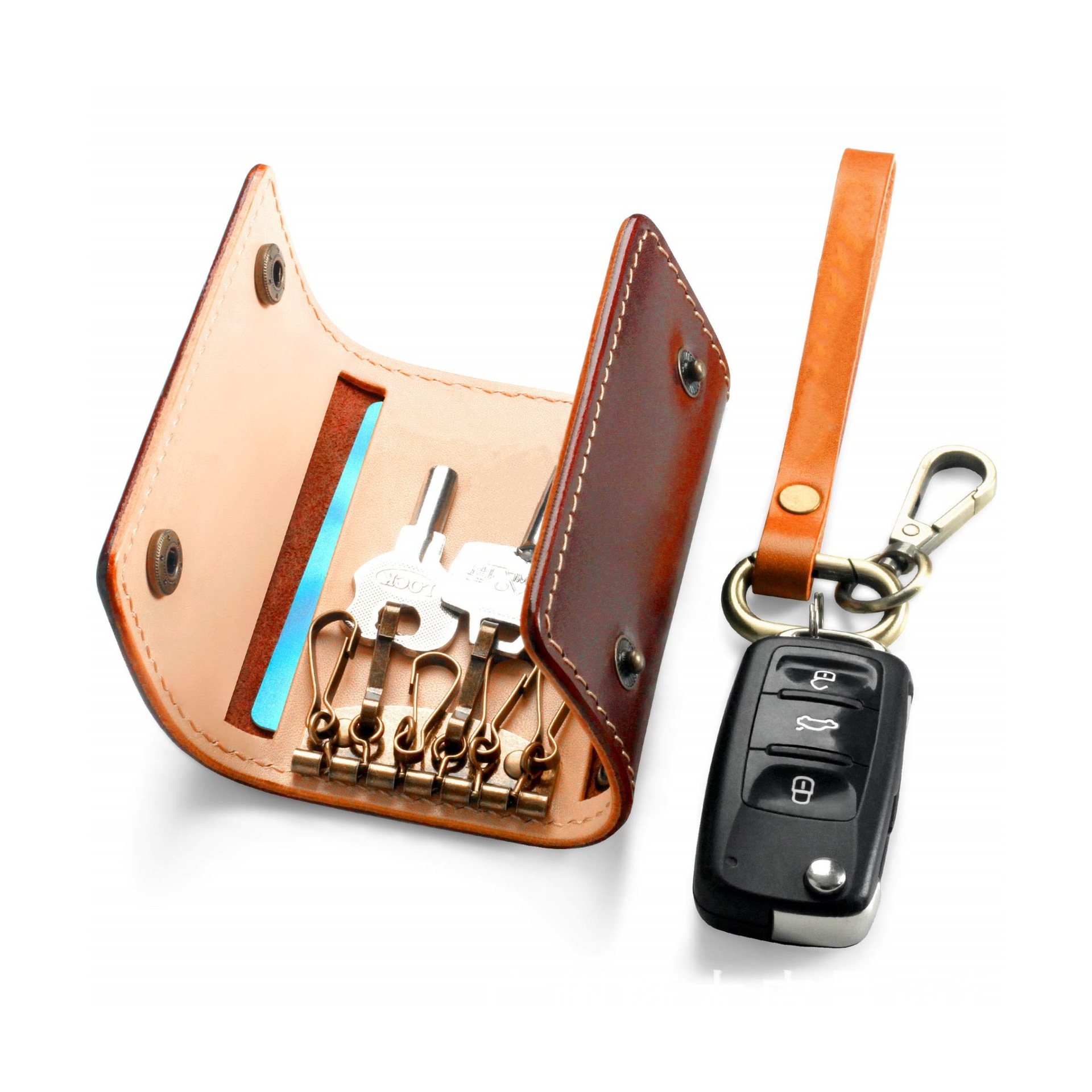 롯데 퍼스트 레이어 소가죽 스냅 버튼 3 배 허리 걸이 키 백 간단한 다기능 휴대용 가죽 키 보관 가방스토어 가기