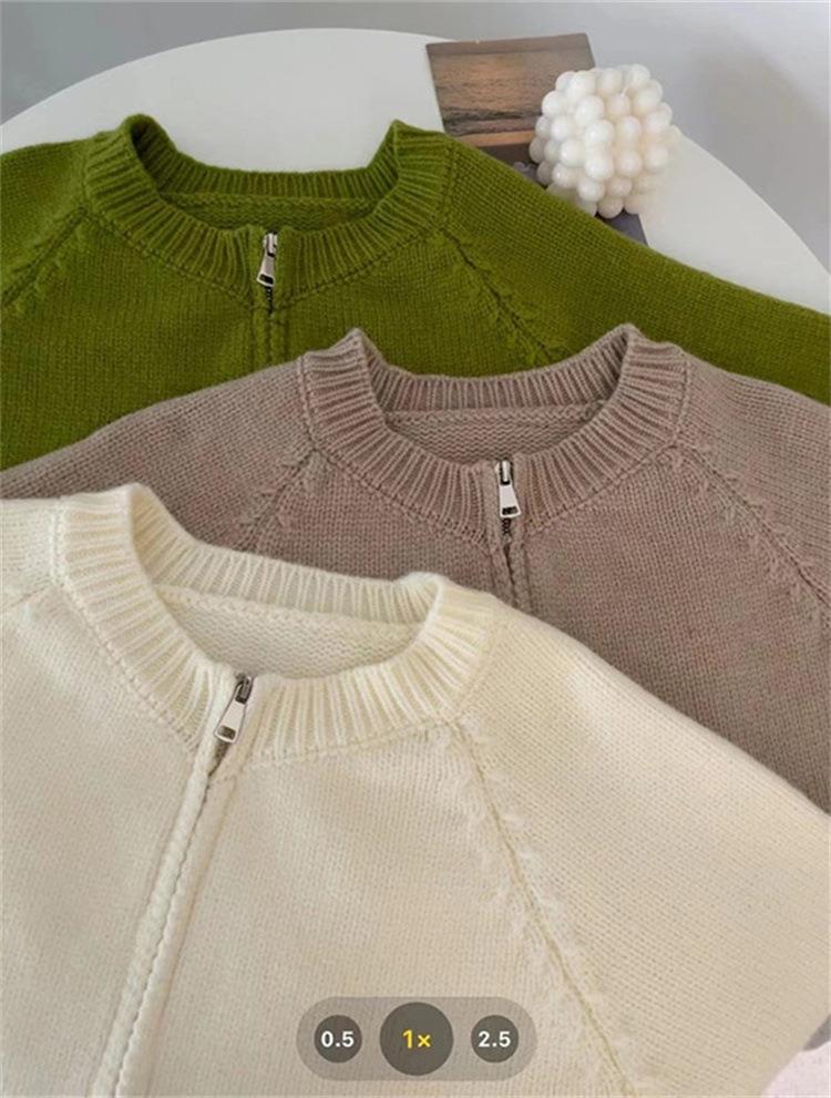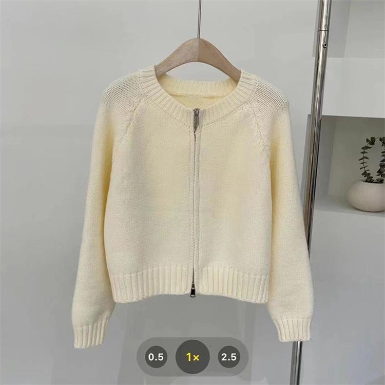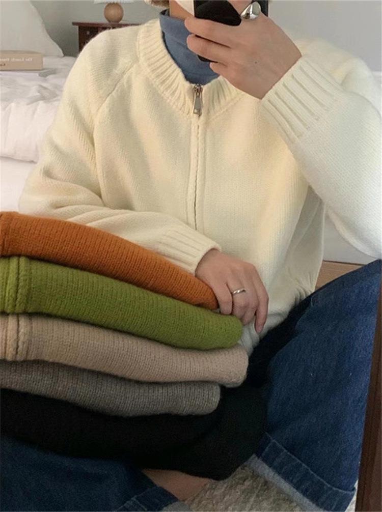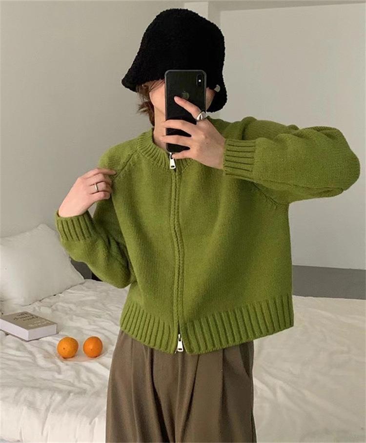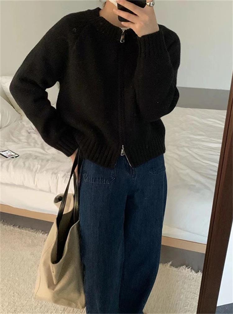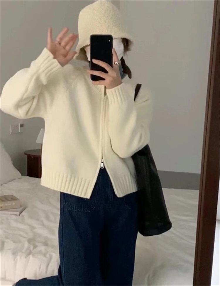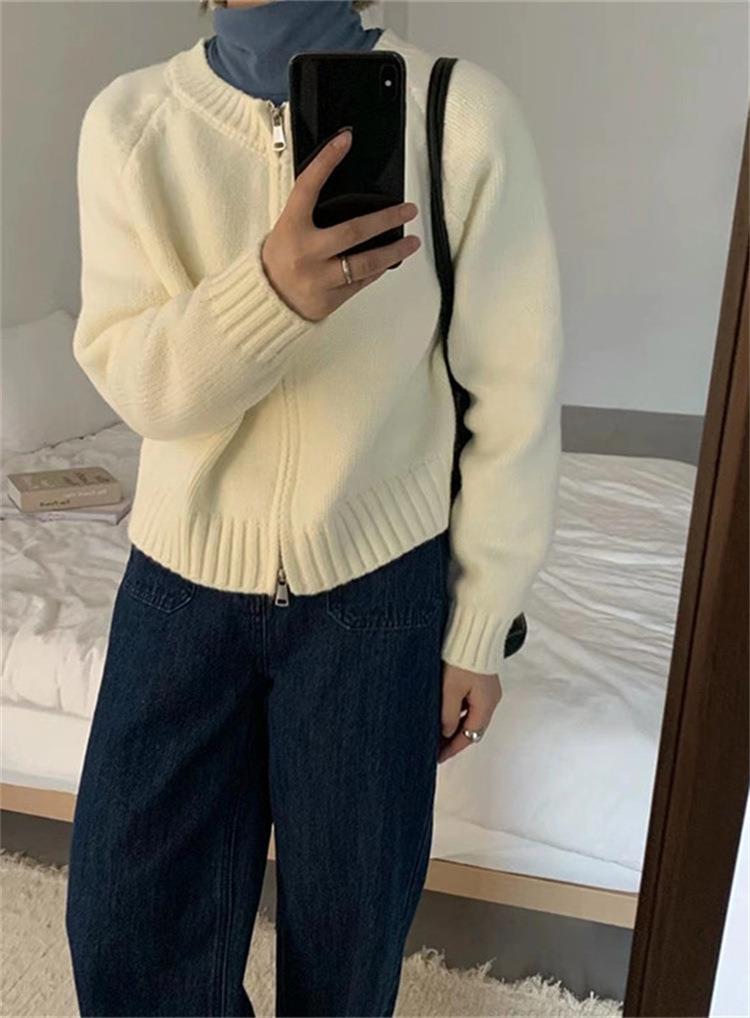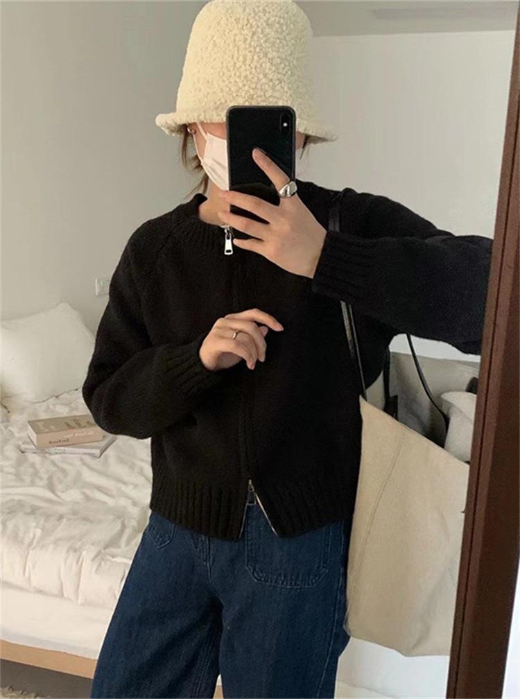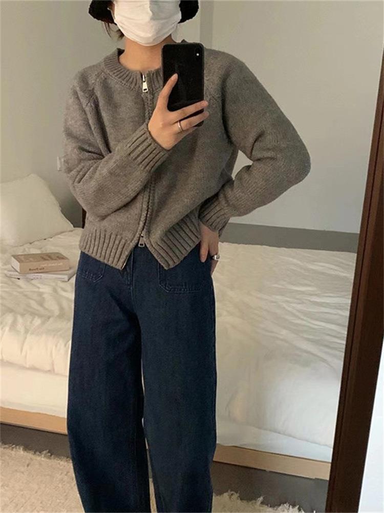 한국 스타일의 부드러운 짧은 단색 스웨터 재킷 여성용 2025 신상 더블 지퍼 니트 가디건 상의 도매스토어 가기
