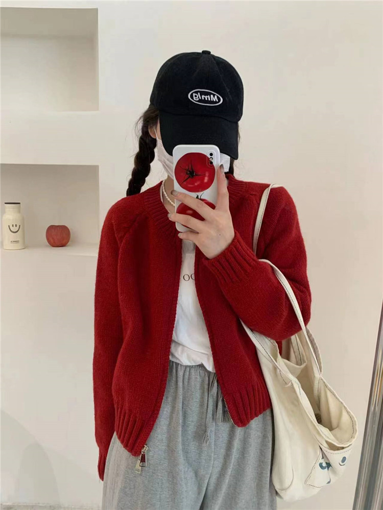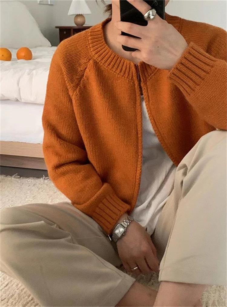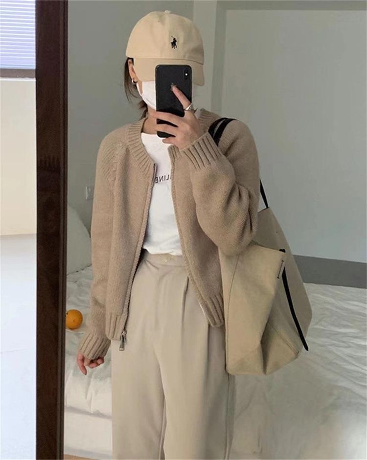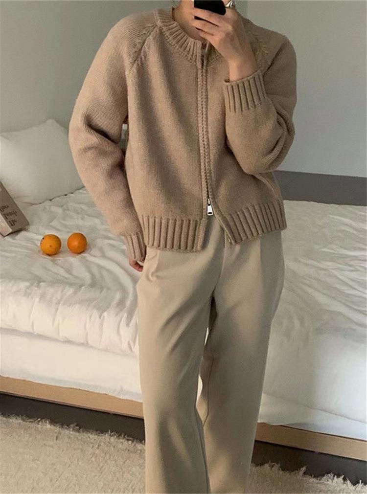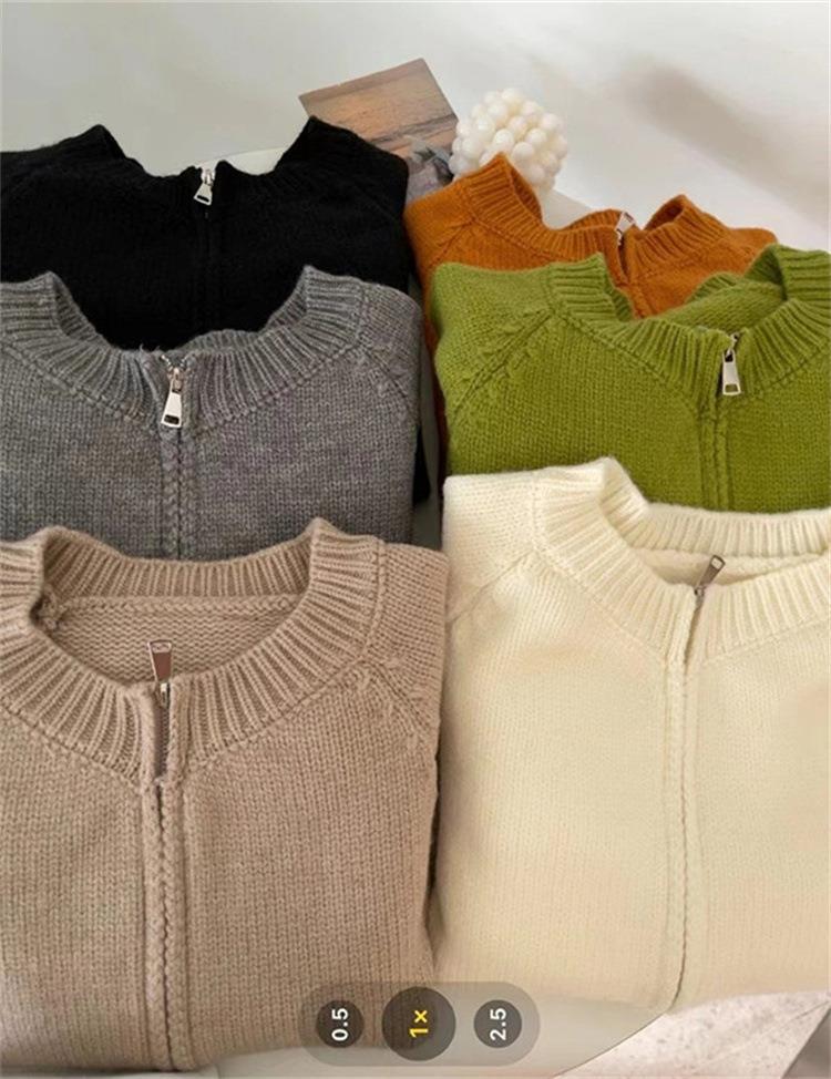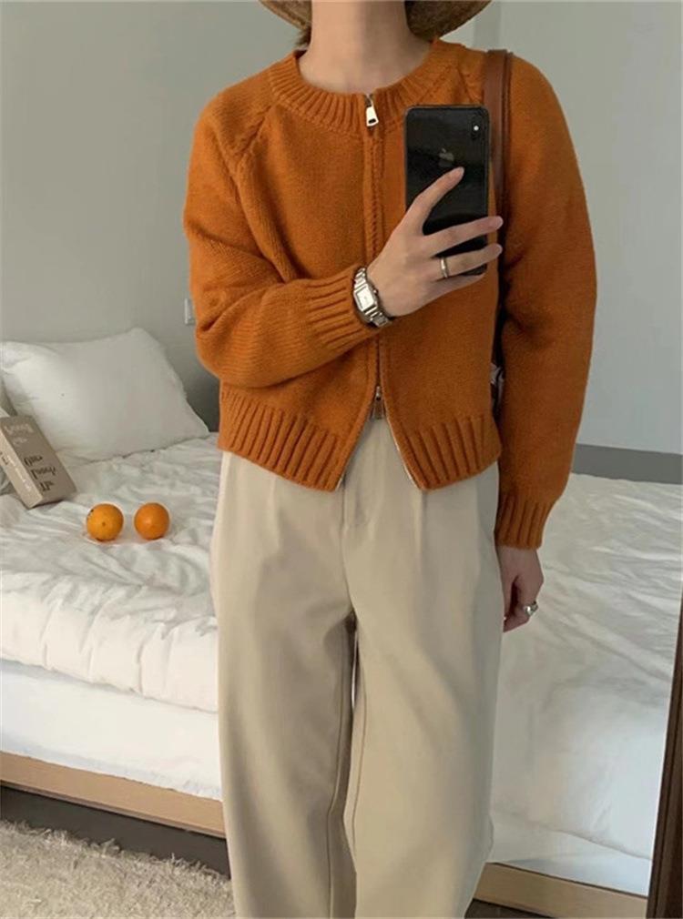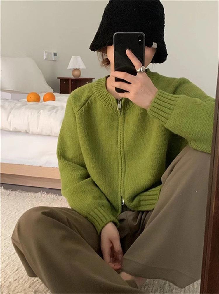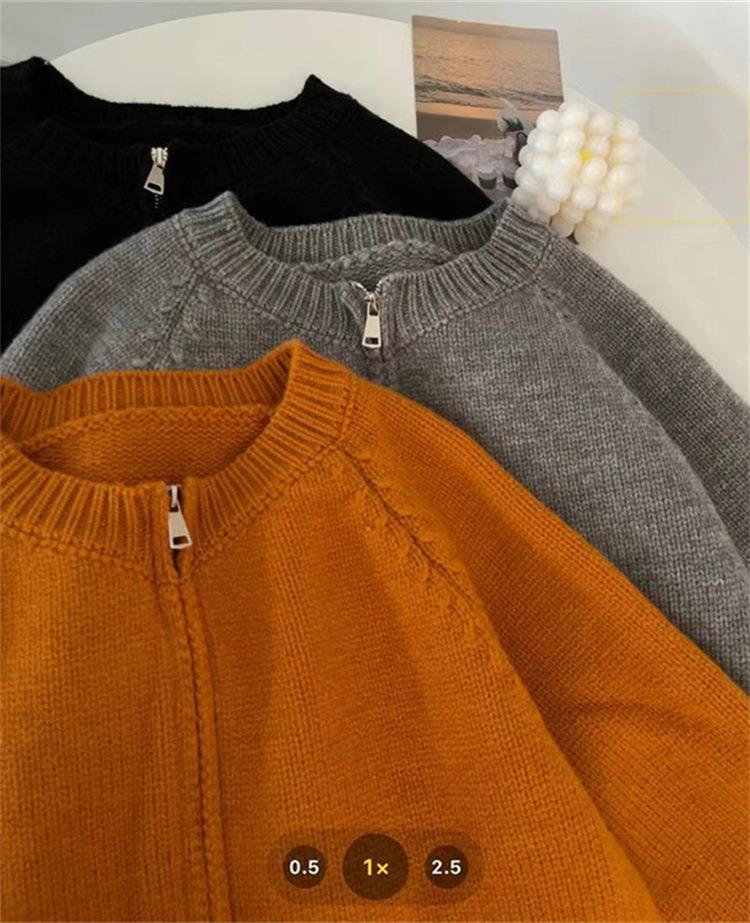 한국 스타일의 부드러운 짧은 단색 스웨터 재킷 여성용 2025 신상 더블 지퍼 니트 가디건 상의 도매스토어 가기