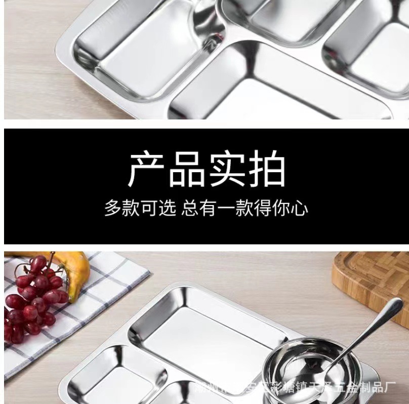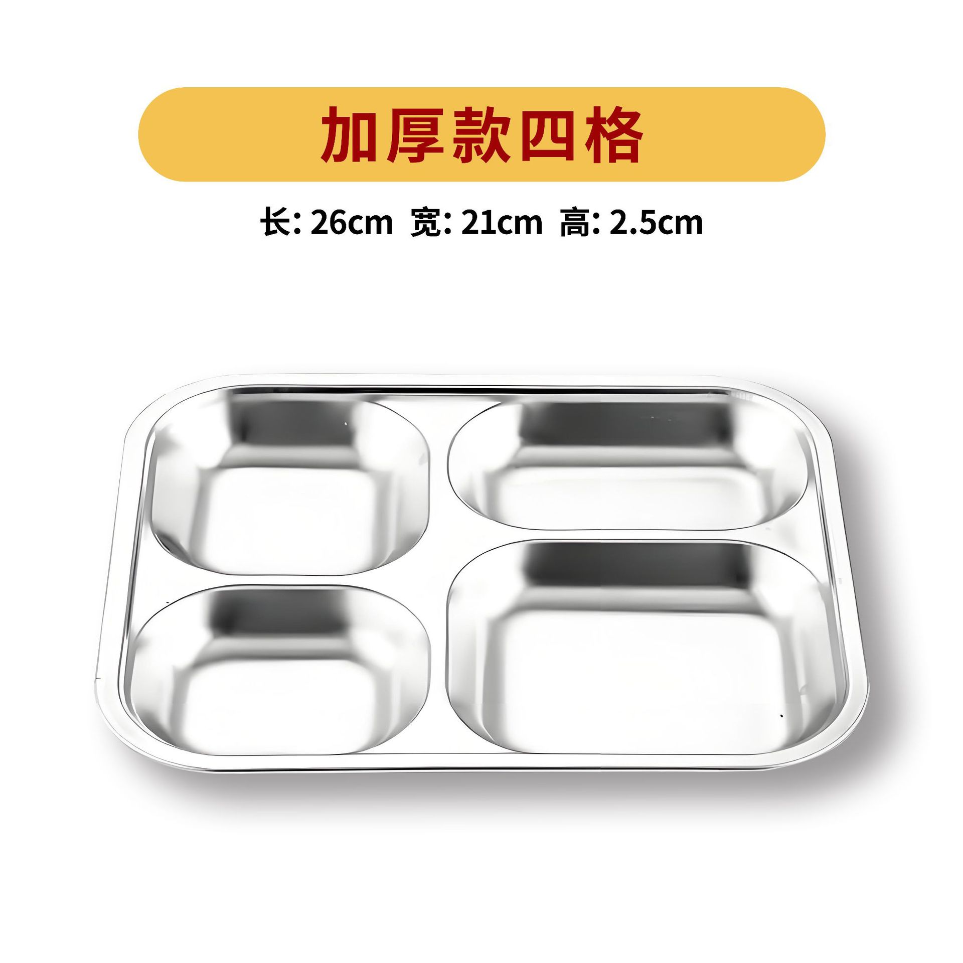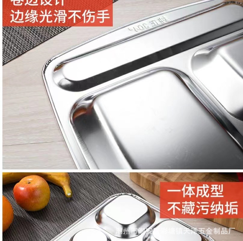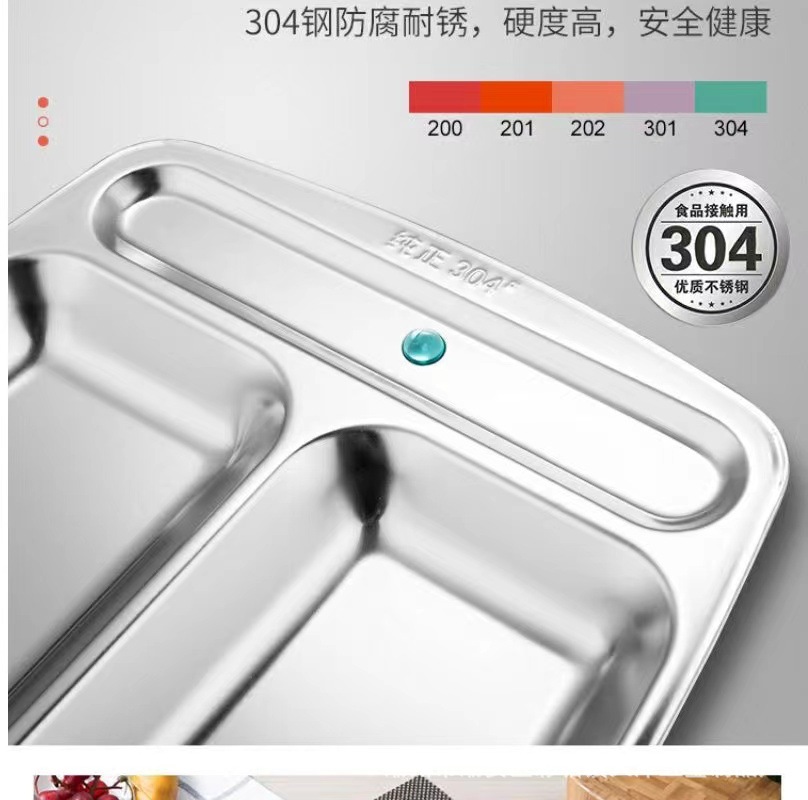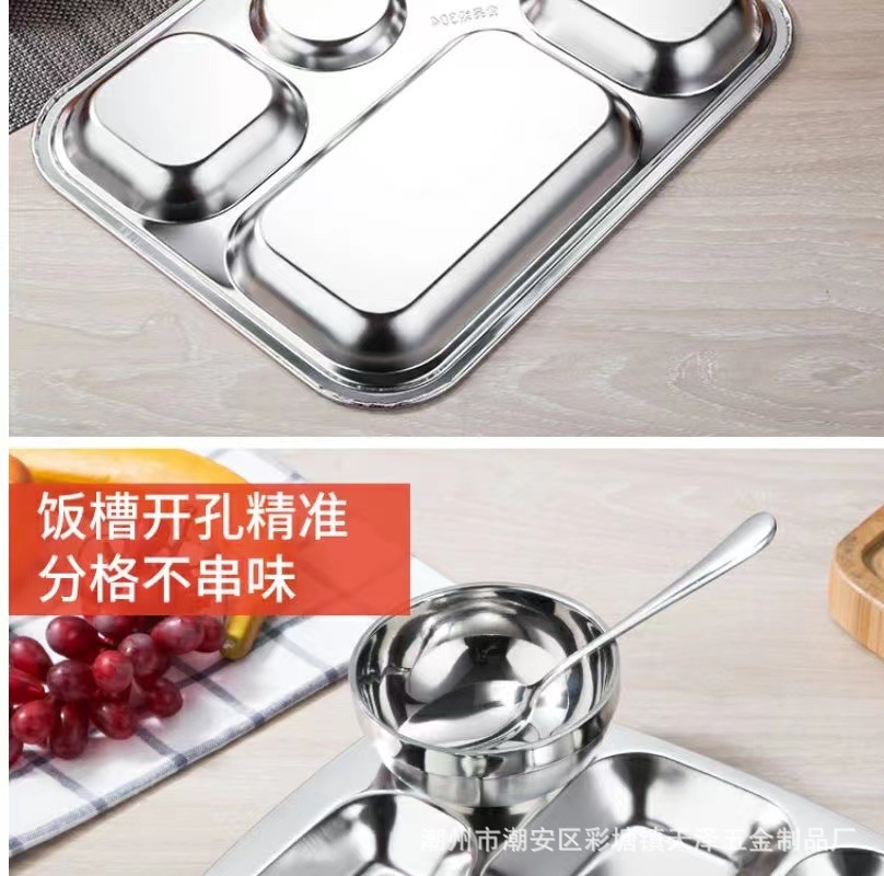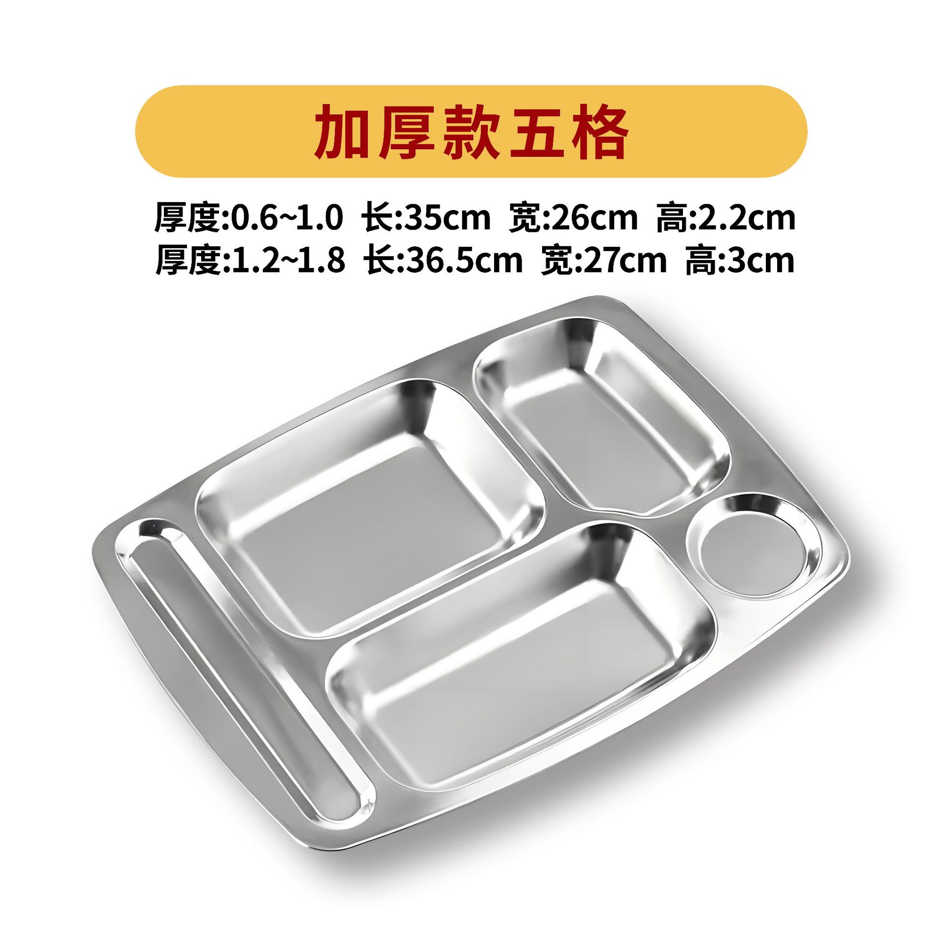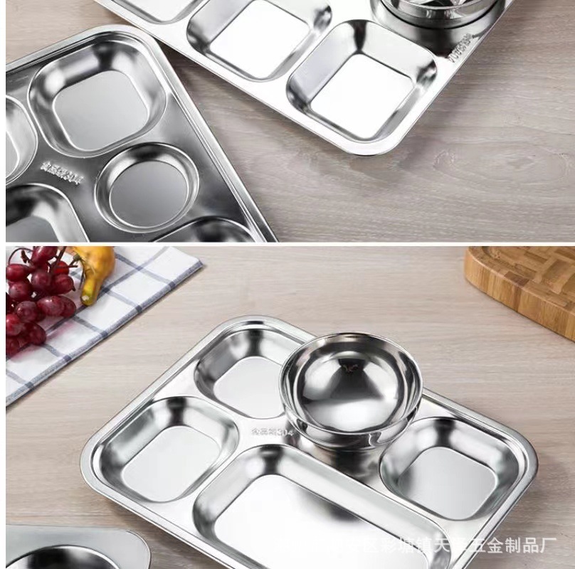 304 스테인레스 스틸 디너 플레이트 성인 어린이 매점 사각 칸막이 도시락 뚜껑이있는 두꺼운 밥 접시 패스트 푸드 플레이트