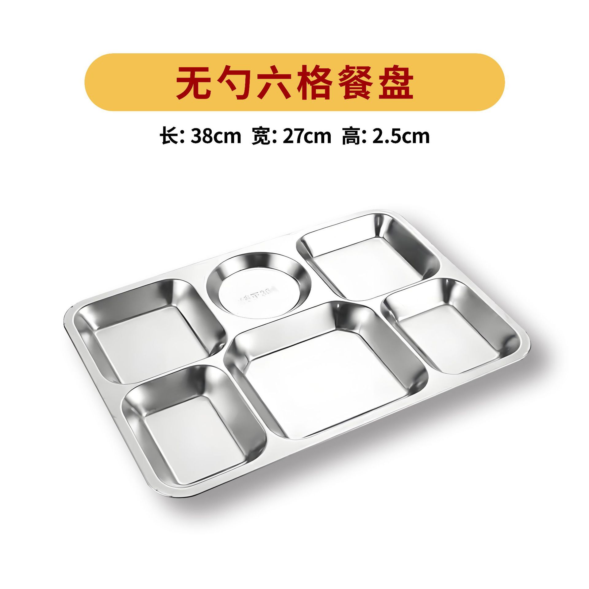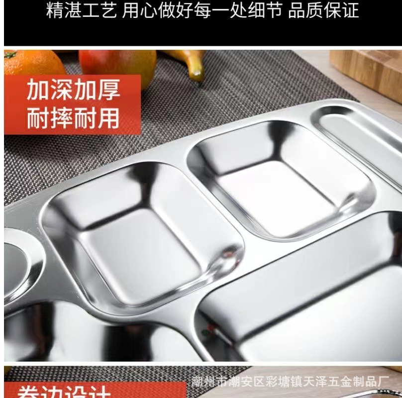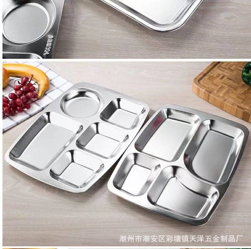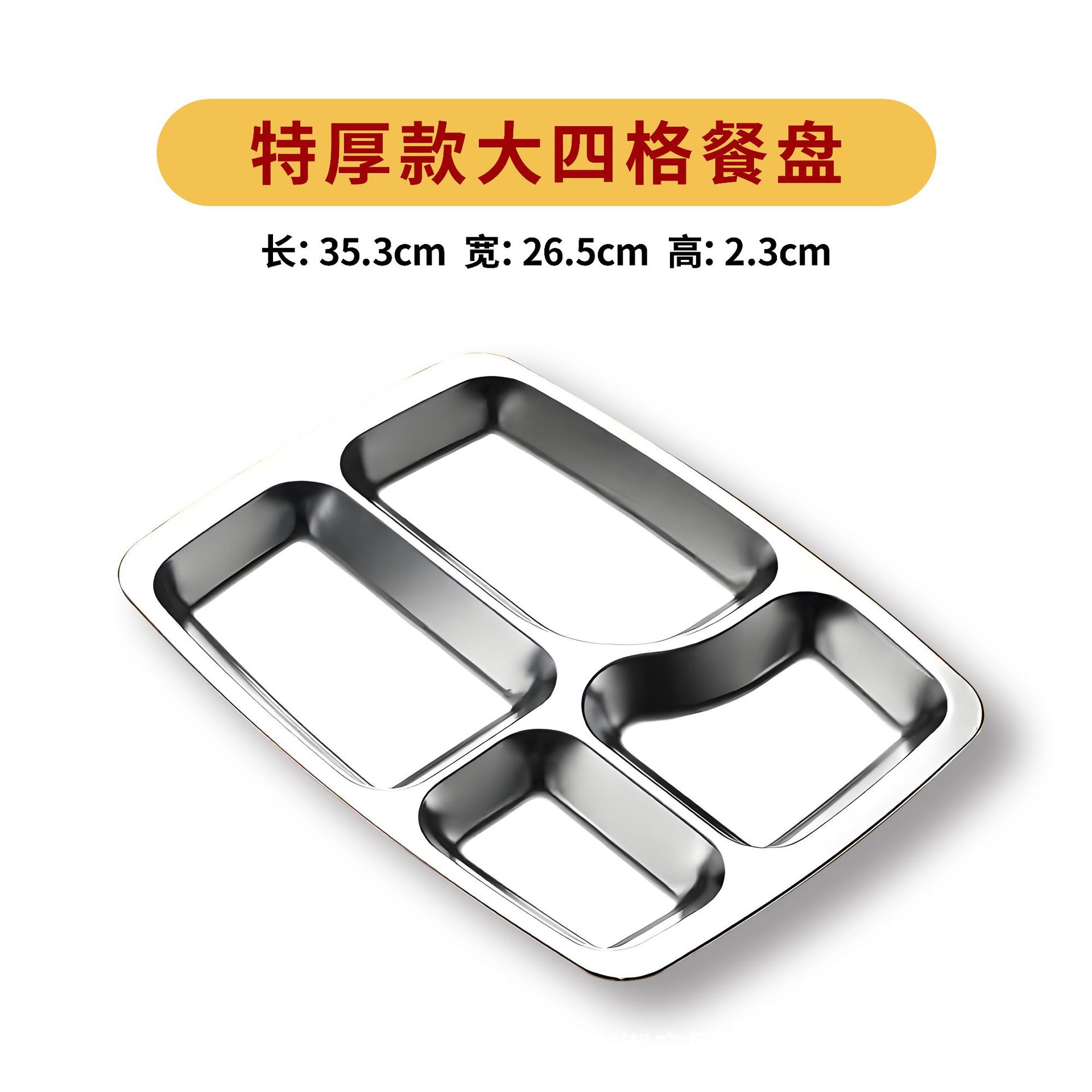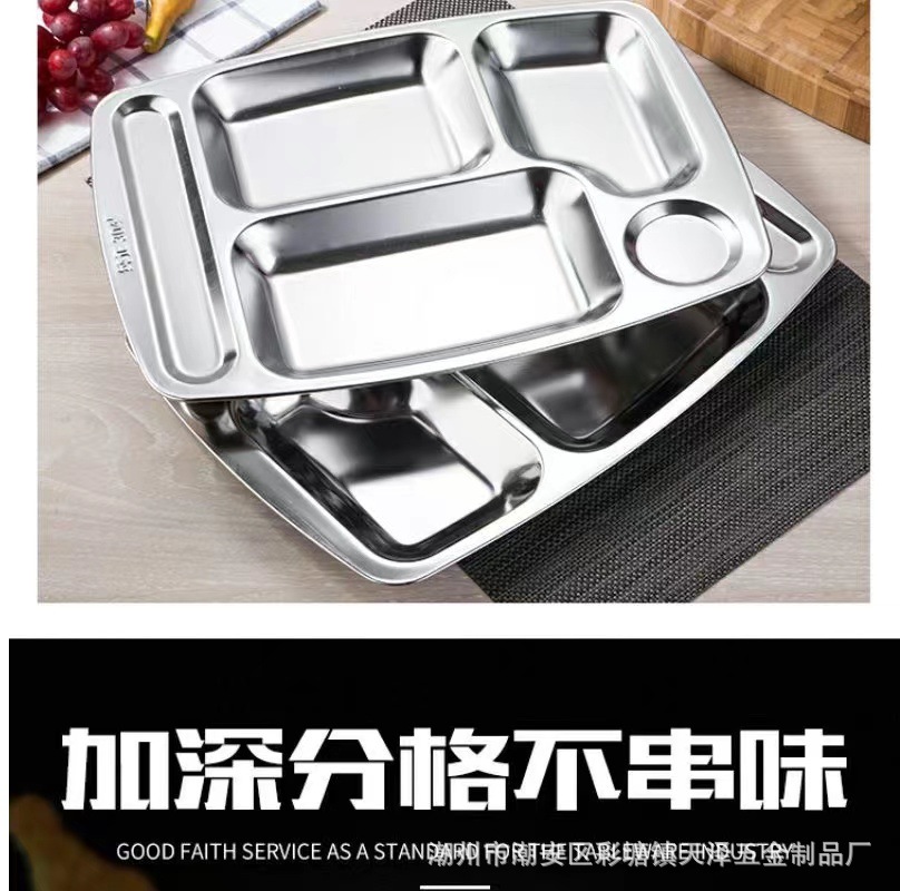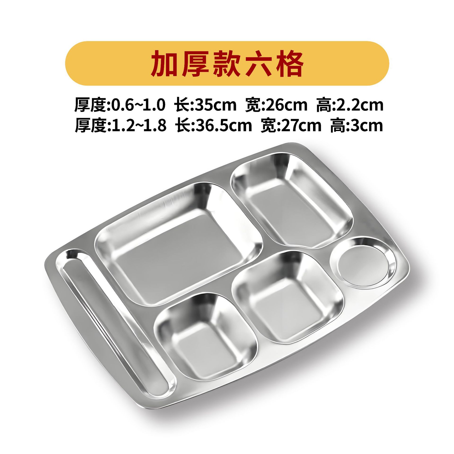 304 스테인레스 스틸 디너 플레이트 성인 어린이 매점 사각 칸막이 도시락 뚜껑이있는 두꺼운 밥 접시 패스트 푸드 플레이트