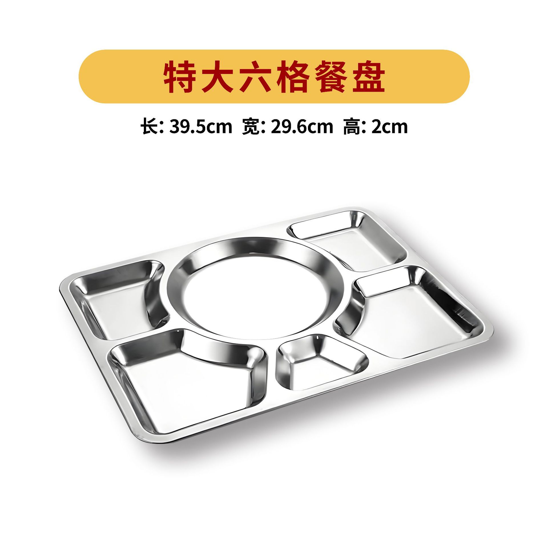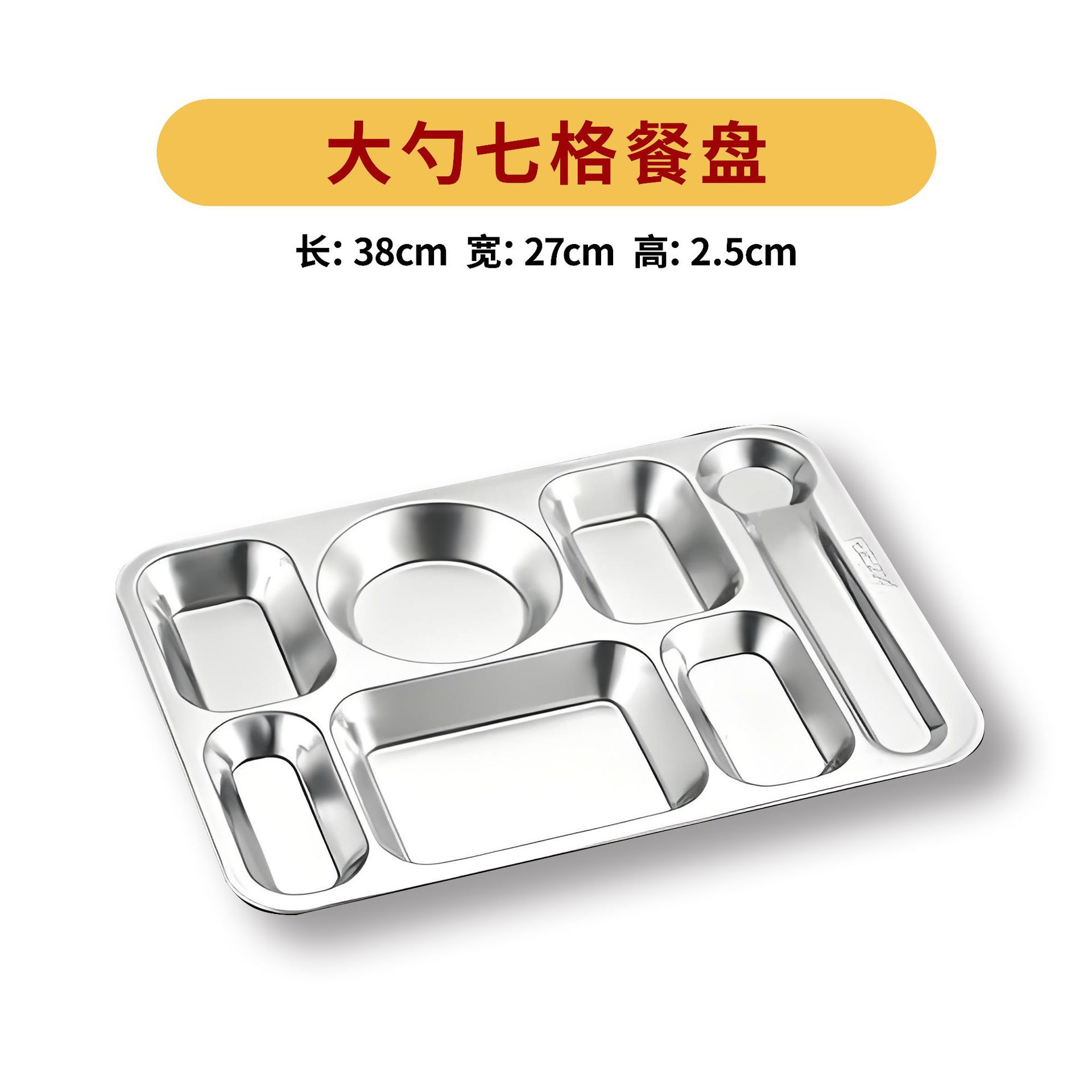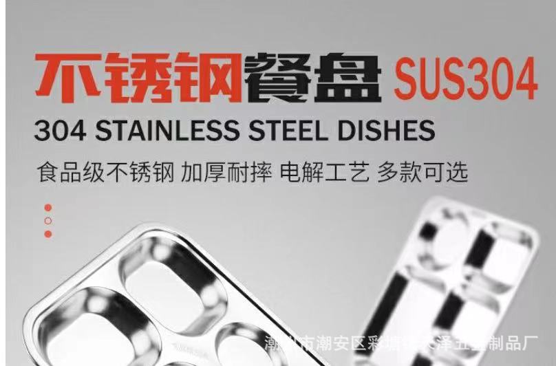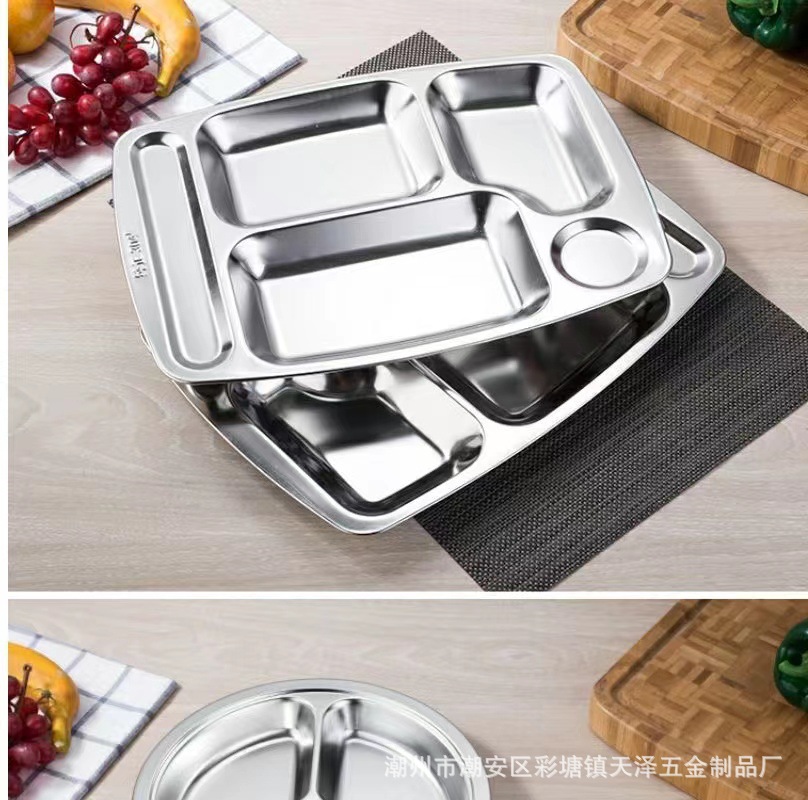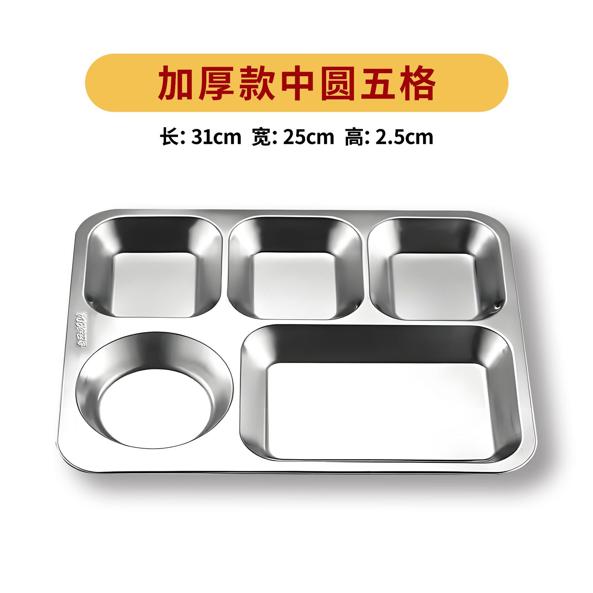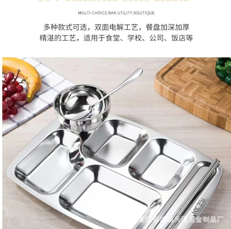 304 스테인레스 스틸 디너 플레이트 성인 어린이 매점 사각 칸막이 도시락 뚜껑이있는 두꺼운 밥 접시 패스트 푸드 플레이트