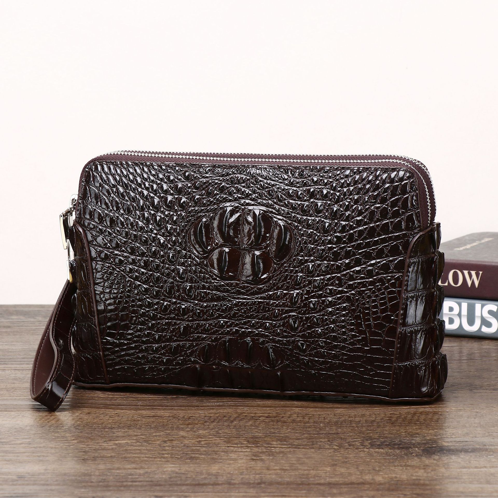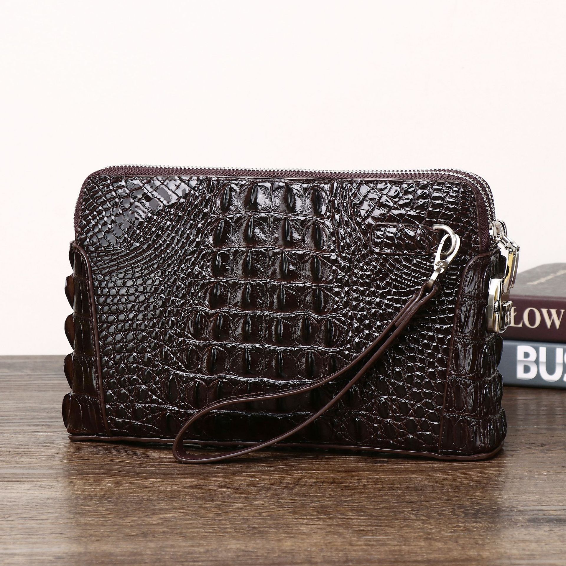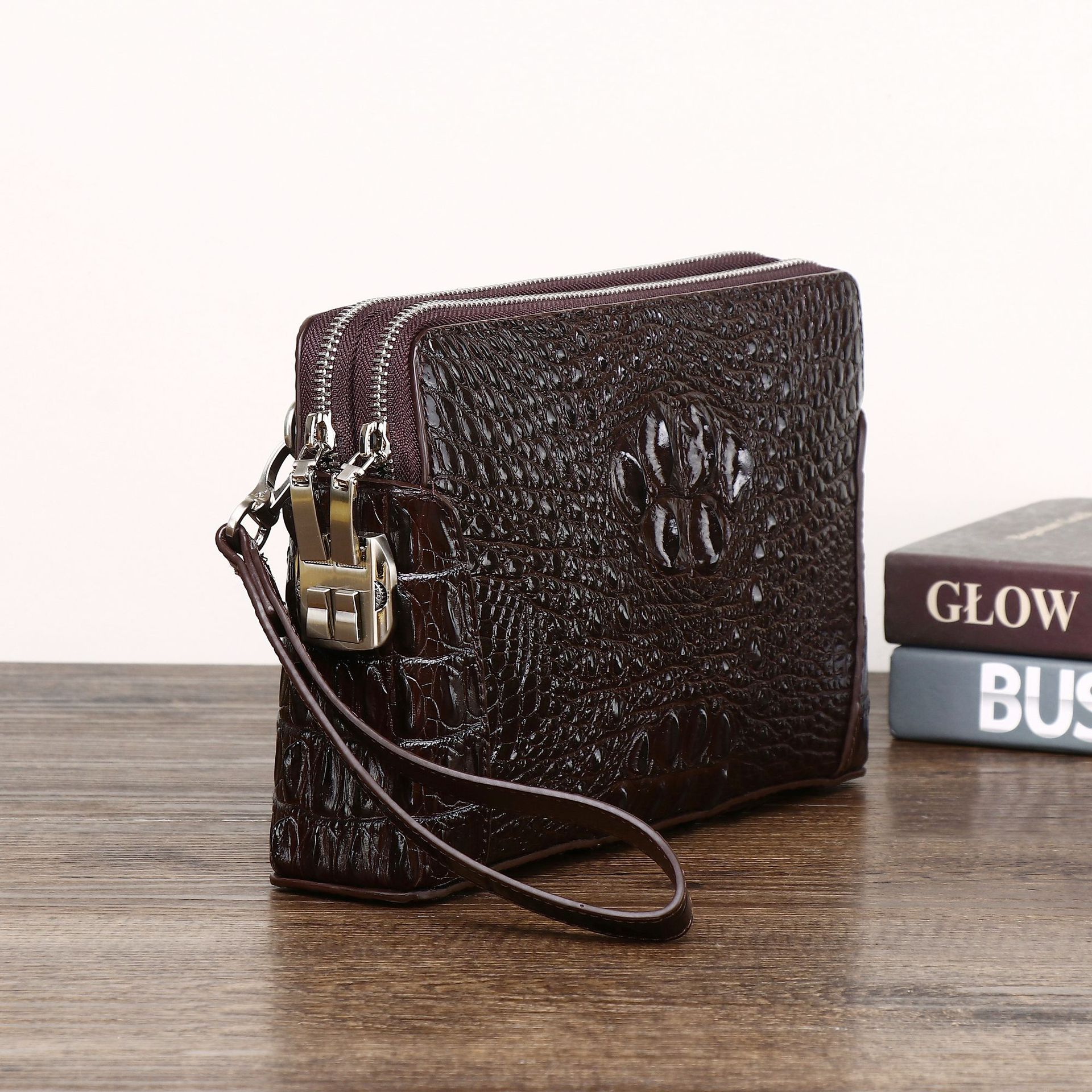 새로운 악어 물고기 뼈 패턴 남성용 클러치 백 더블 지퍼 대형 핸드백 비즈니스 대형 클램프 백 대용량 콤비네이션 잠금 지갑스토어 가기