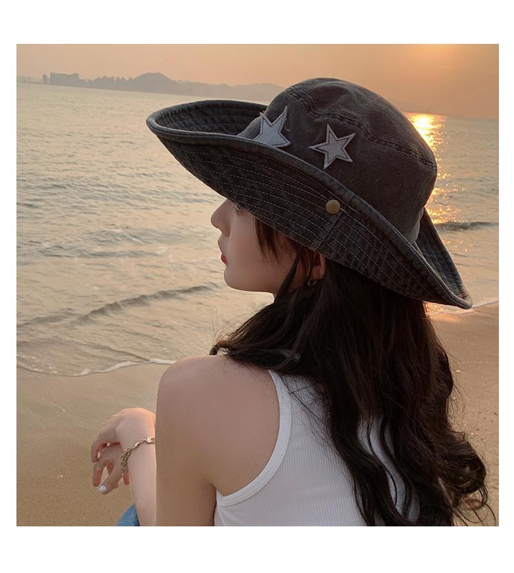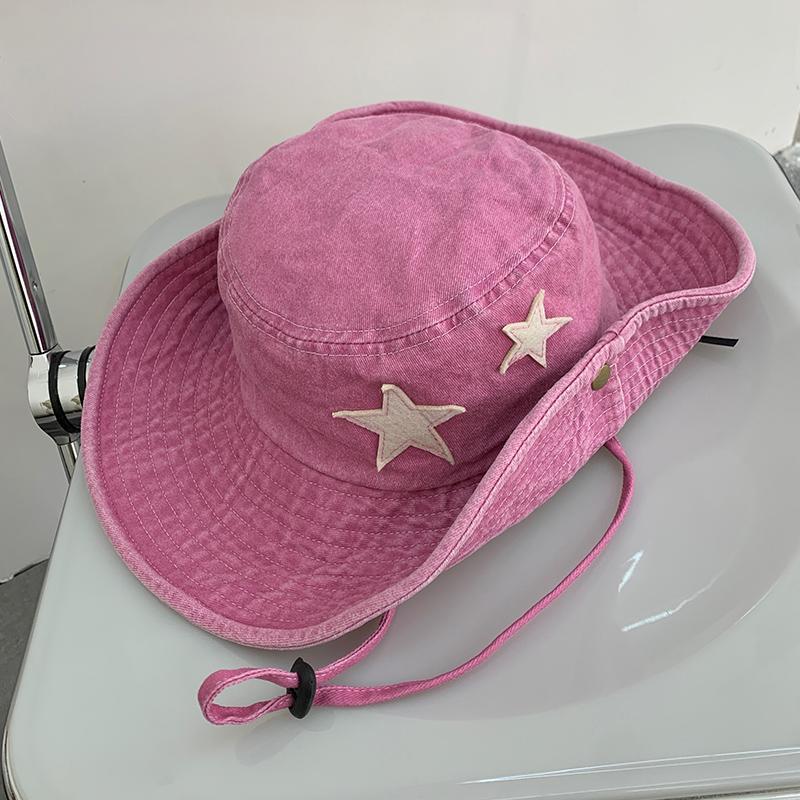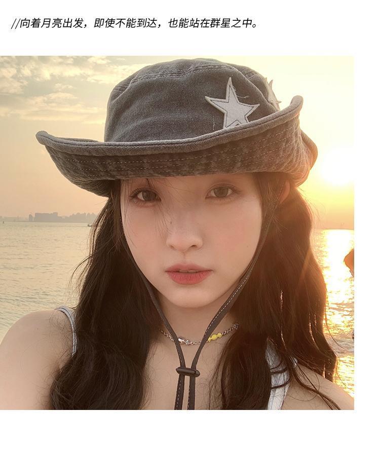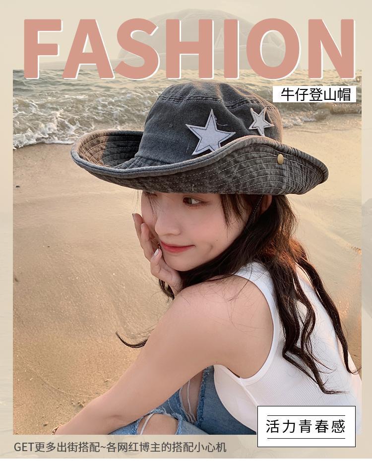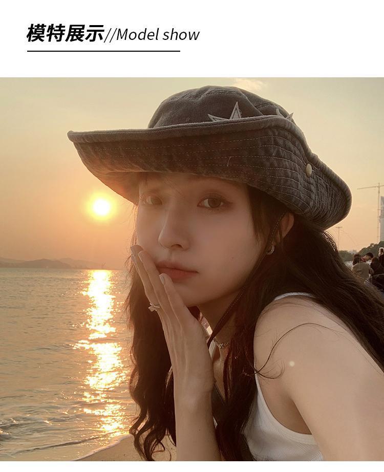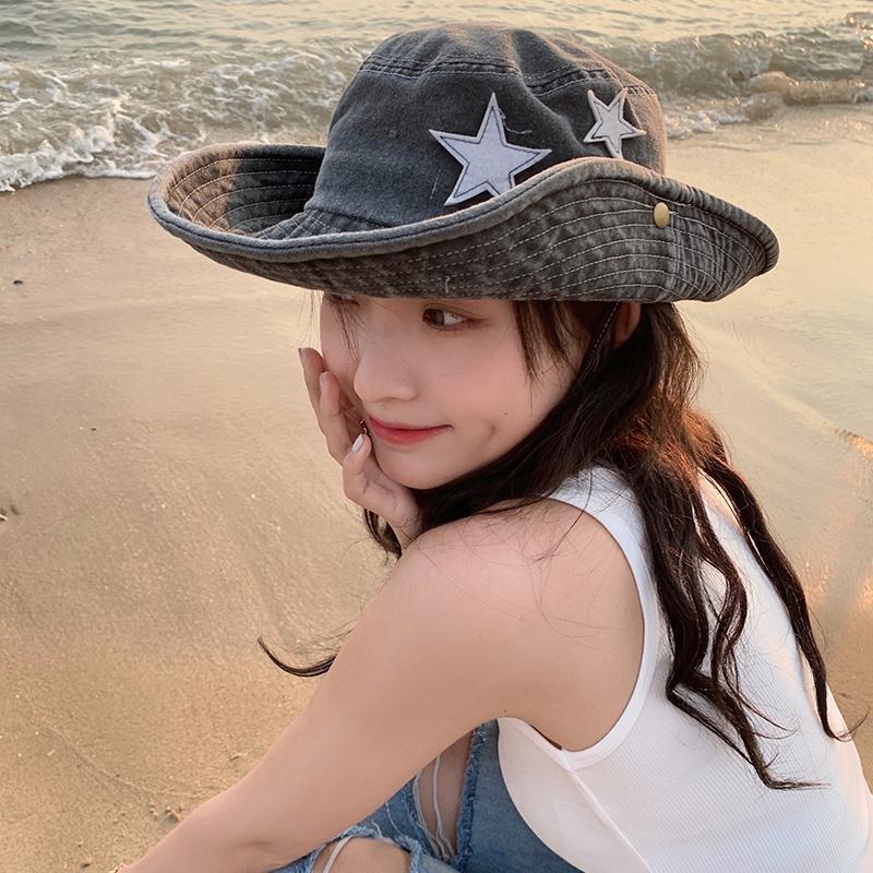 씻은 복고풍 서양 카우보이 모자 여성 여름 일본 태양 방지 야외 등반 모자 캠핑 drawstring 어부 모자