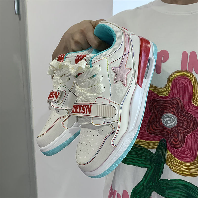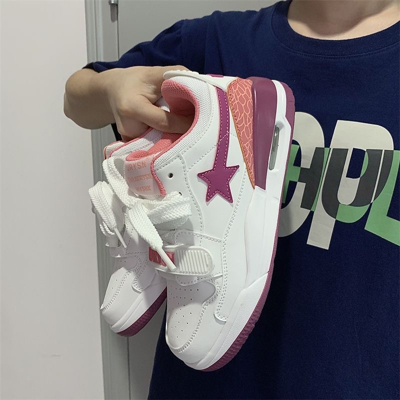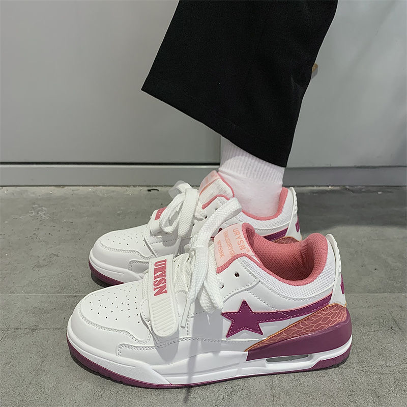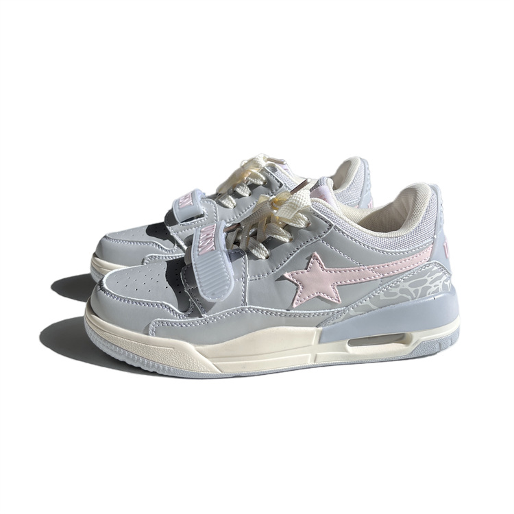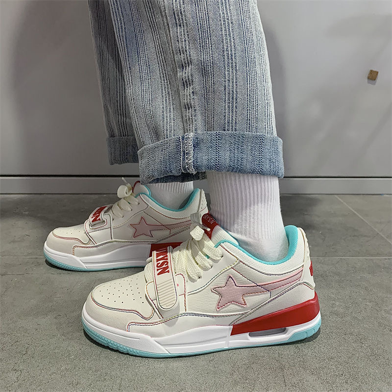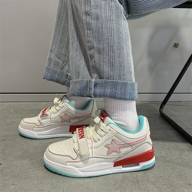 에어 쿠션 스타 보드 신발 여성 학생 2024 새로운 로우 탑 니치 두꺼운 하단 레트로 컬러 매칭 트렌디 캐주얼 운동화