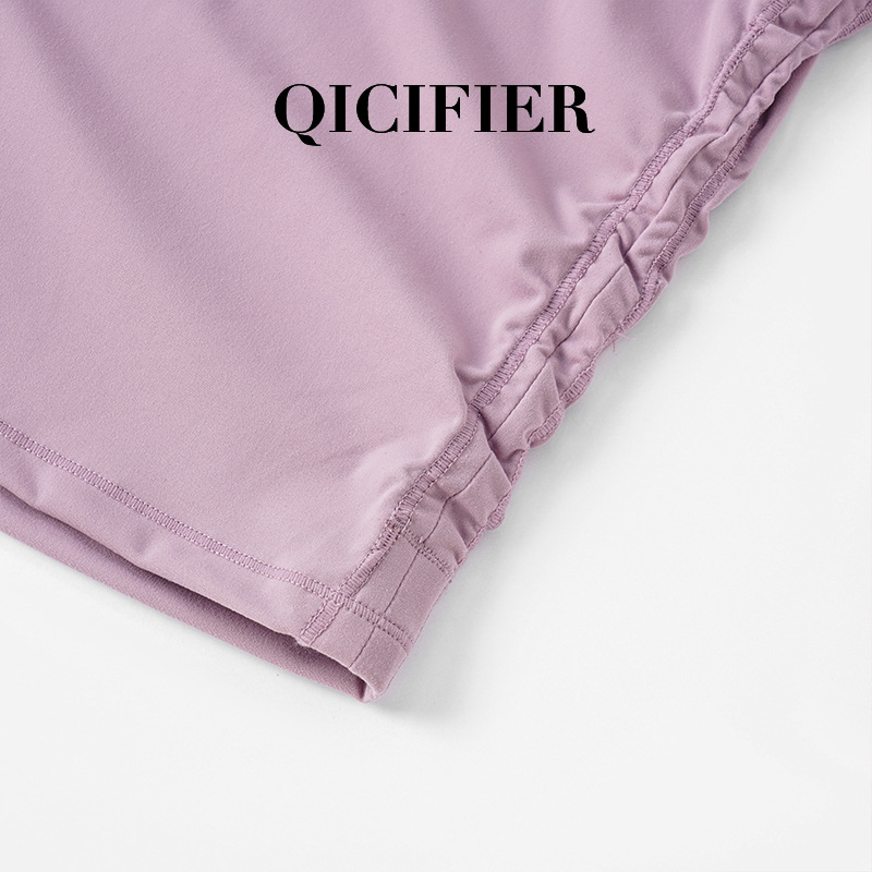QCFE 새로운 야외 스포츠 러닝 요가 의류 슬림 핏 티셔츠 사이드 허리 탄성 알몸 요가 탑 여성용스토어 가기