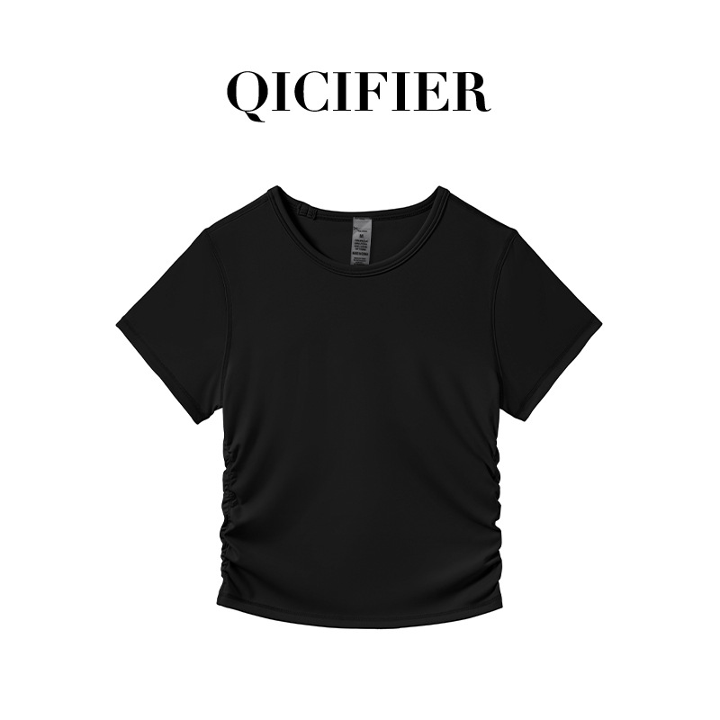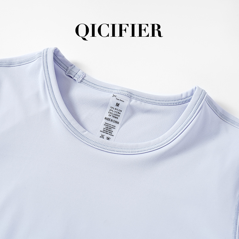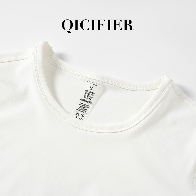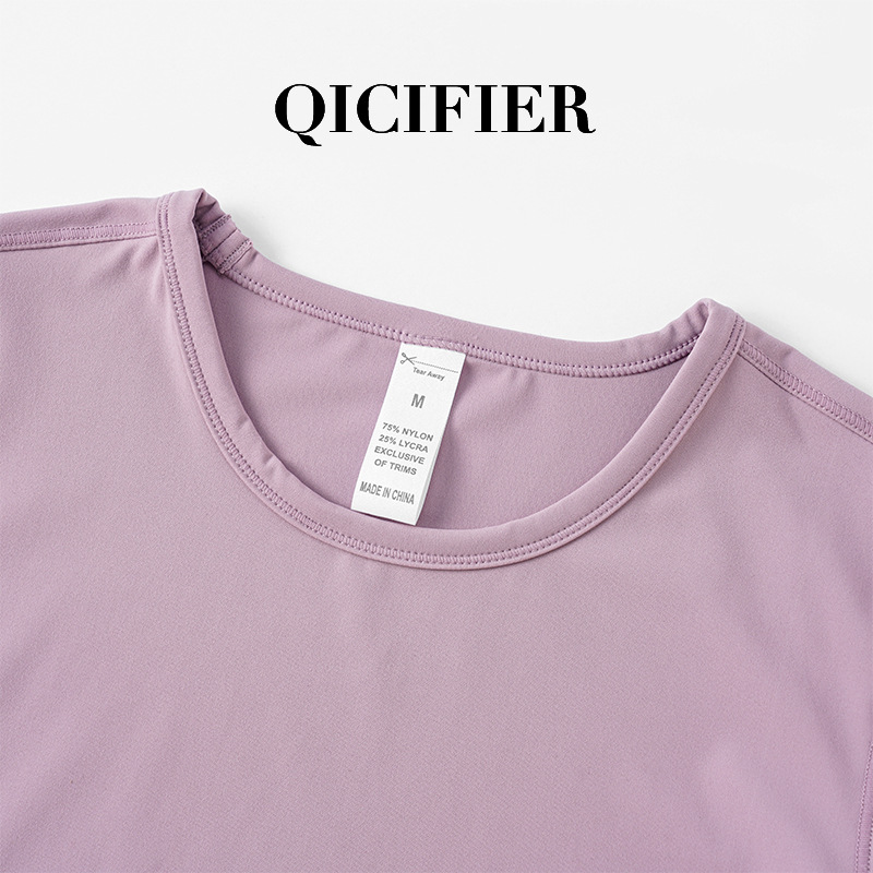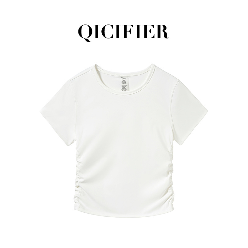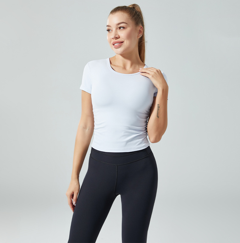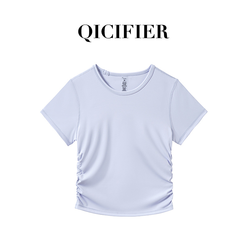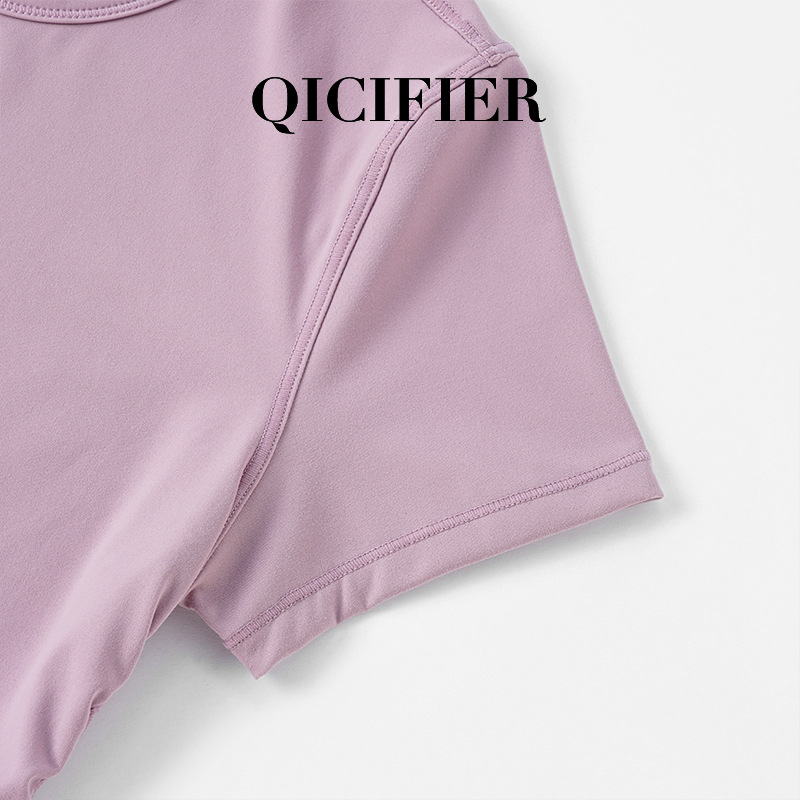 QCFE 새로운 야외 스포츠 러닝 요가 의류 슬림 핏 티셔츠 사이드 허리 탄성 알몸 요가 탑 여성용