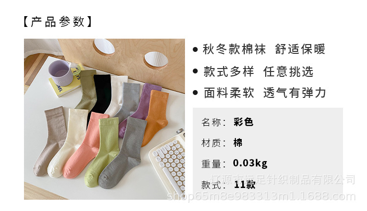 단색 양말 어린이 미드 튜브 양말 인터넷 인기 느슨한 입 문 면 양말 가을, 겨울, 봄, 여름 사계절 착용 가능 모든 매치 스택