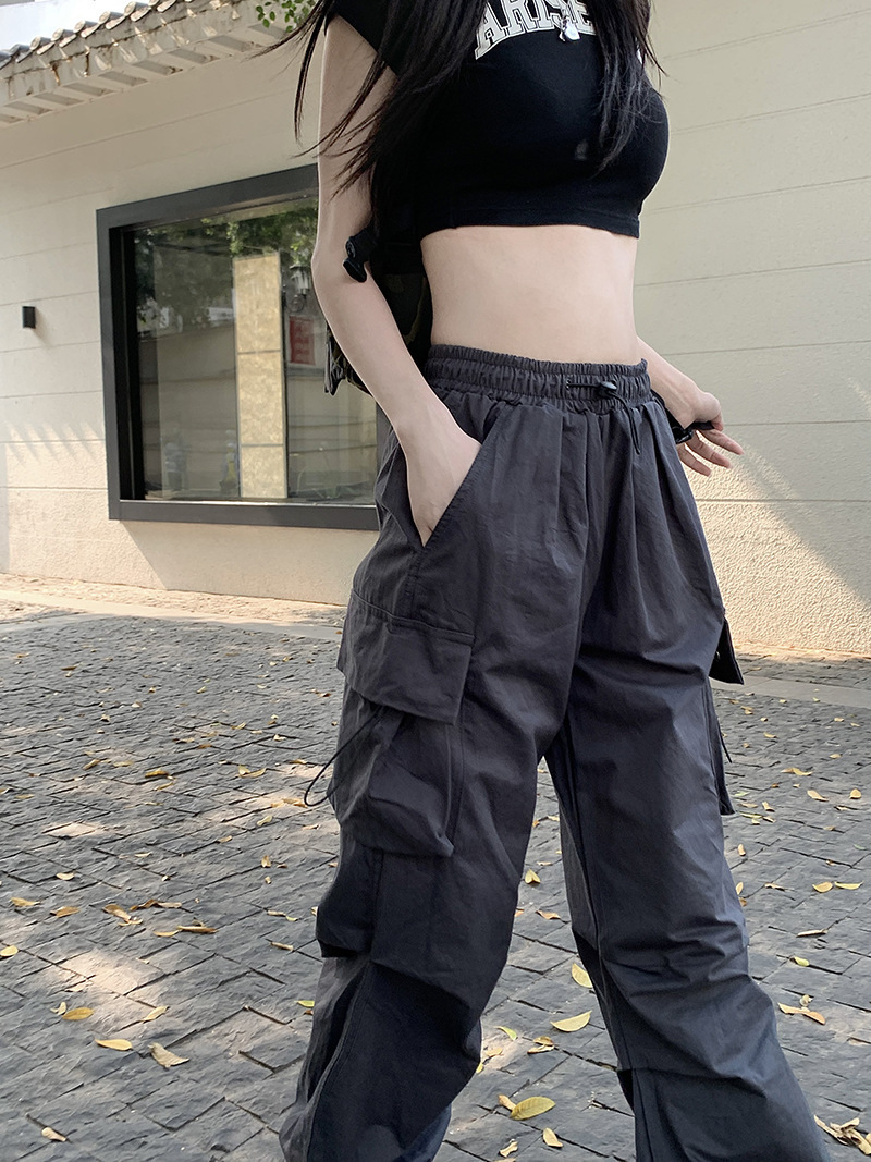2023 와이드 레그 팬츠 여성 봄과 여름 새로운 디자인 감각 느슨한 고기 커버 슬리밍 하이 스트리트 멀티 포켓 스트레이트 팬츠