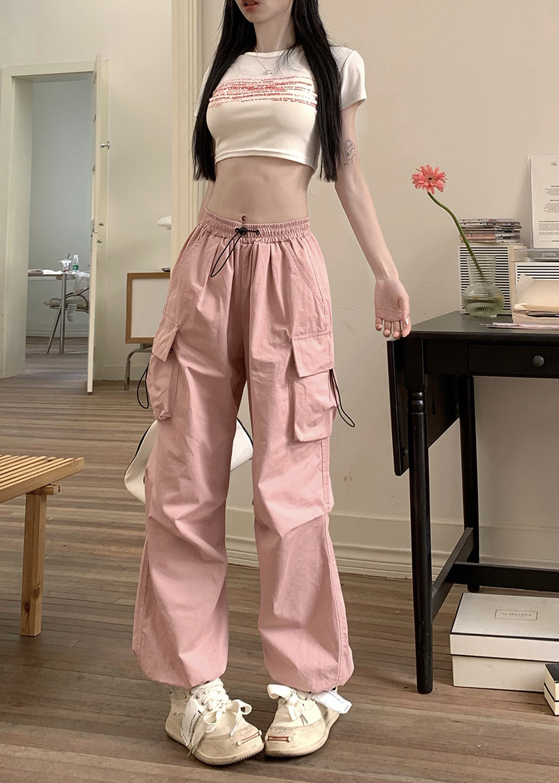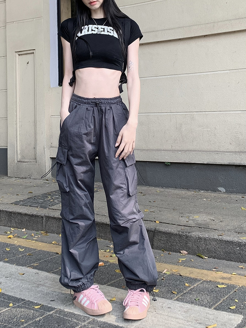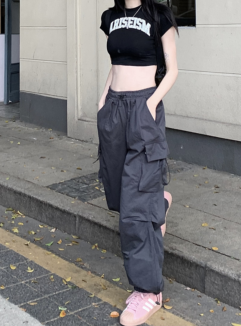 2023 와이드 레그 팬츠 여성 봄과 여름 새로운 디자인 감각 느슨한 고기 커버 슬리밍 하이 스트리트 멀티 포켓 스트레이트 팬츠스토어 가기