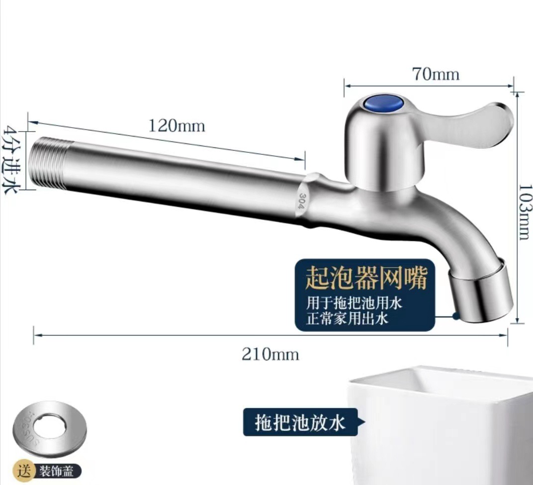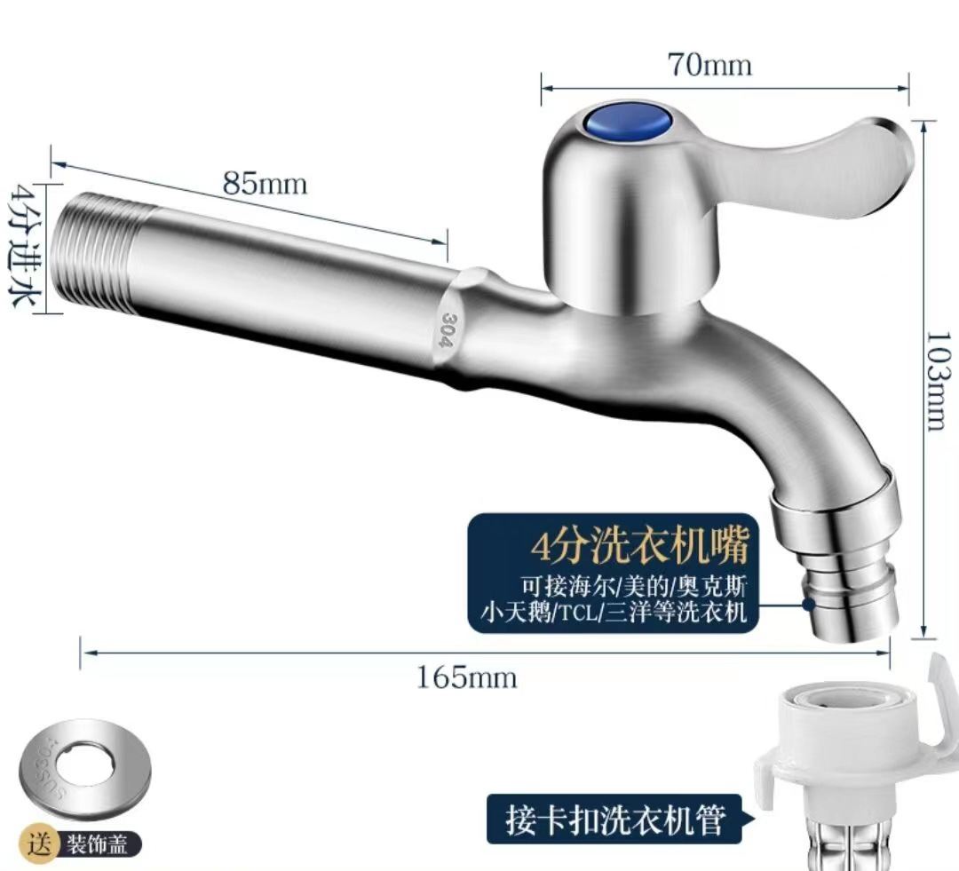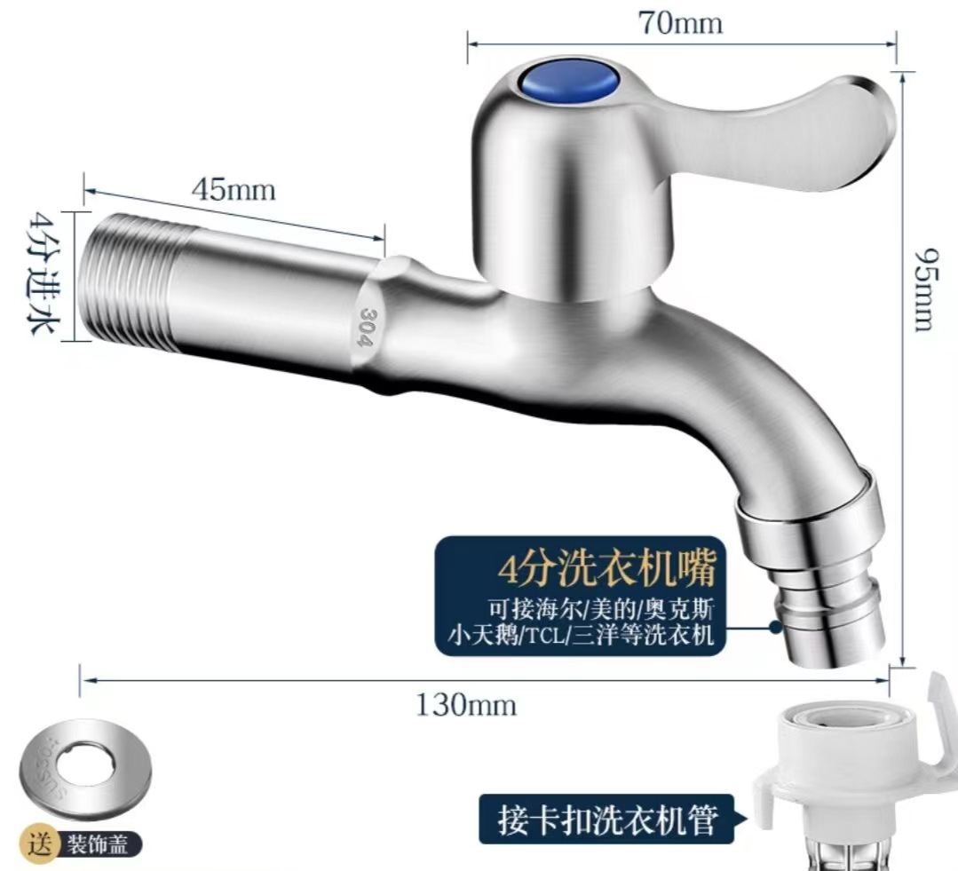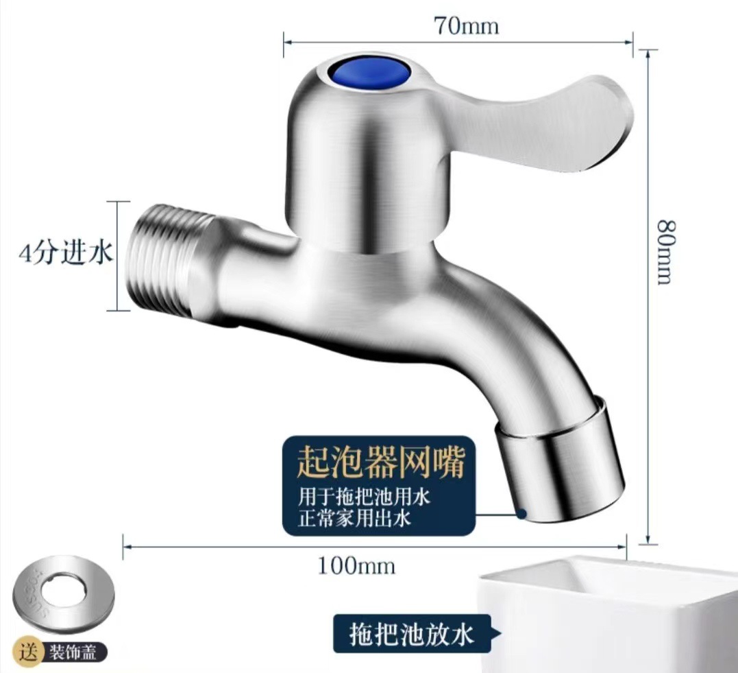 4 점 304 스테인레스 세탁기 걸레 수영장 수도꼭지 걸레 수영장 빠른 개방 작은 수도꼭지 단일 냉수 노즐 노즐