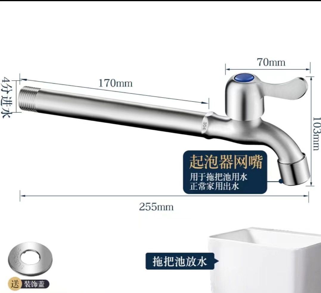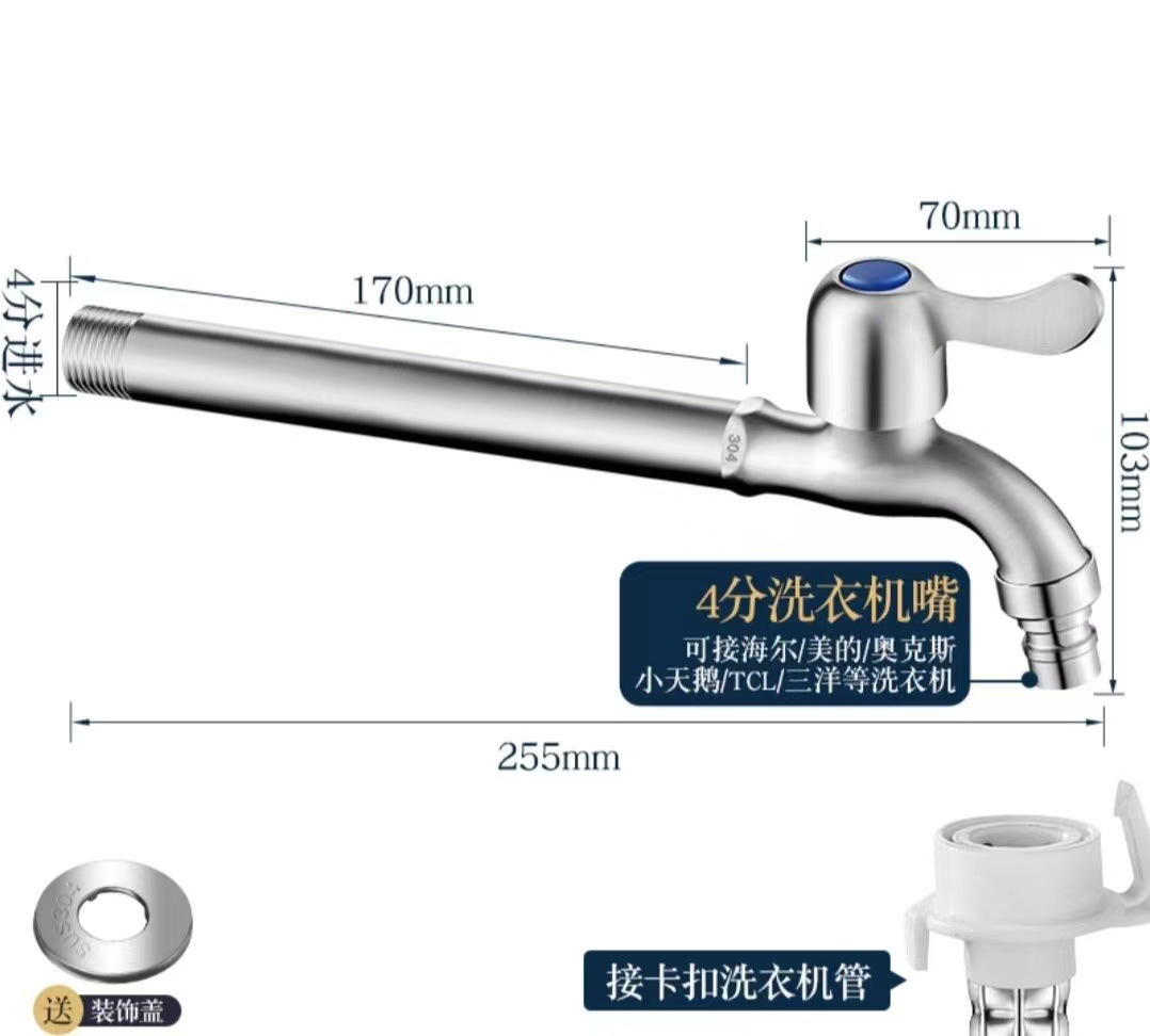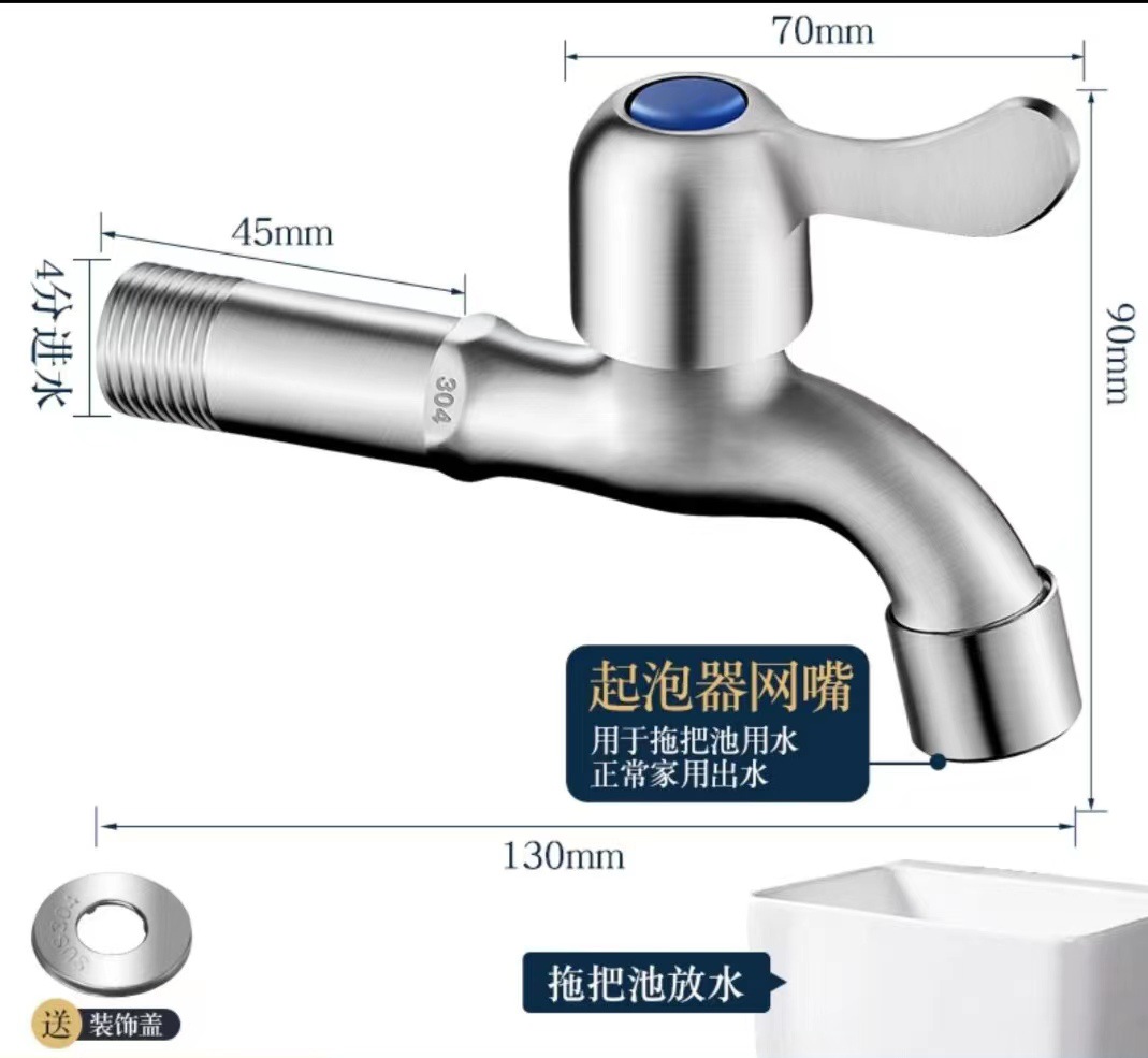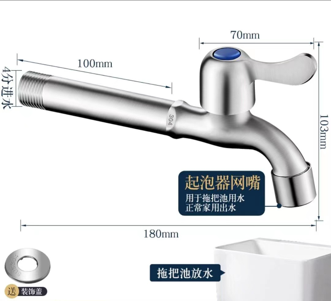 4 점 304 스테인레스 세탁기 걸레 수영장 수도꼭지 걸레 수영장 빠른 개방 작은 수도꼭지 단일 냉수 노즐 노즐