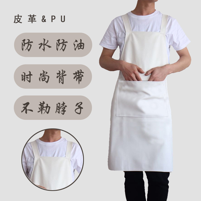 가죽 PU 부드러운 가죽 방수 앞치마 화이트 H 숄더 스트랩 내유성 허리 남성용 주방 요리사 식품 공장 작업복 여성스토어 가기