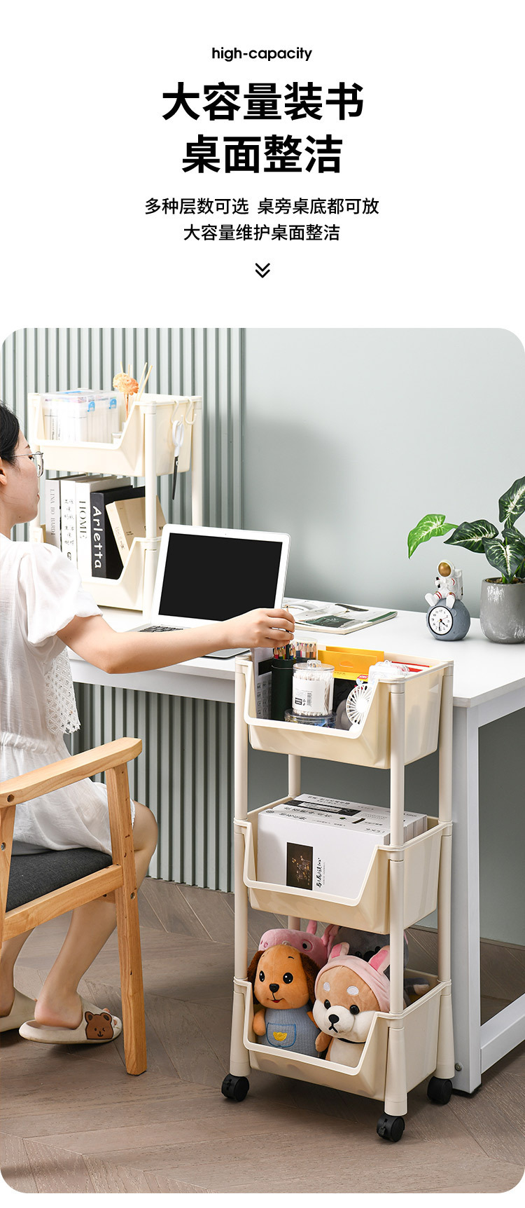 테이블 아래 책장 사무실 책상 데스크탑 스토리지 랙 바퀴 달린 이동식 바닥 간단한 캐비닛 스토리지 카트스토어 가기