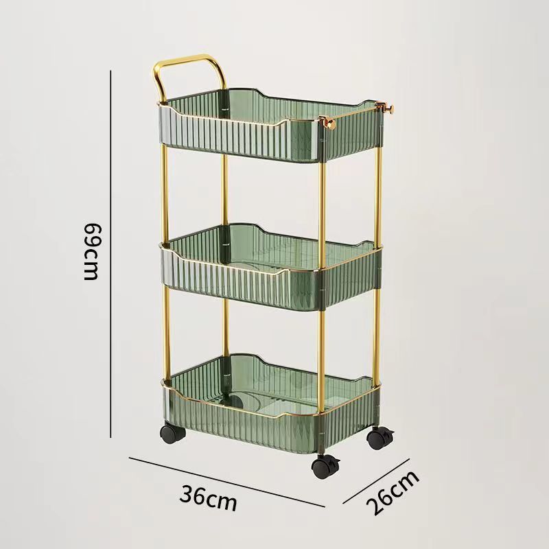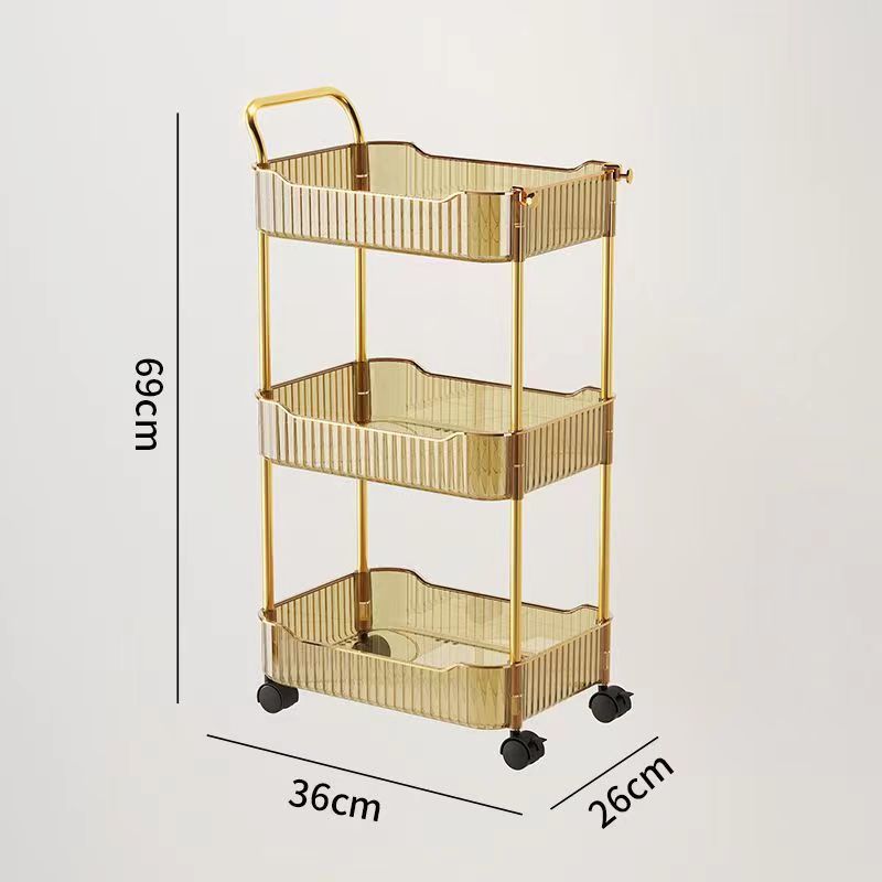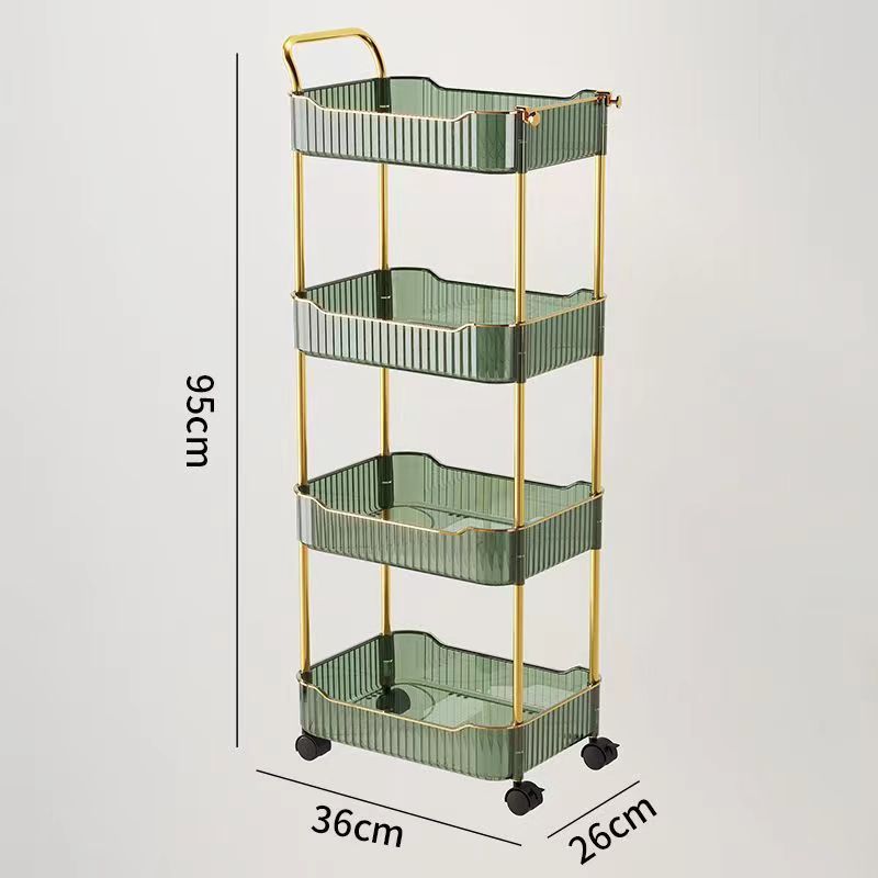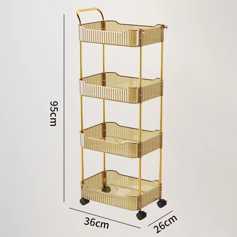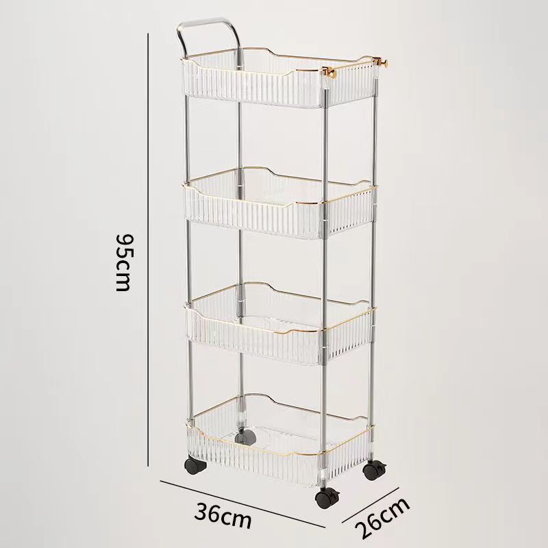 HS 투명 트롤리 수납 선반 이동식 2~4단 다용도 수납 선반 거실 주방 수납 선반