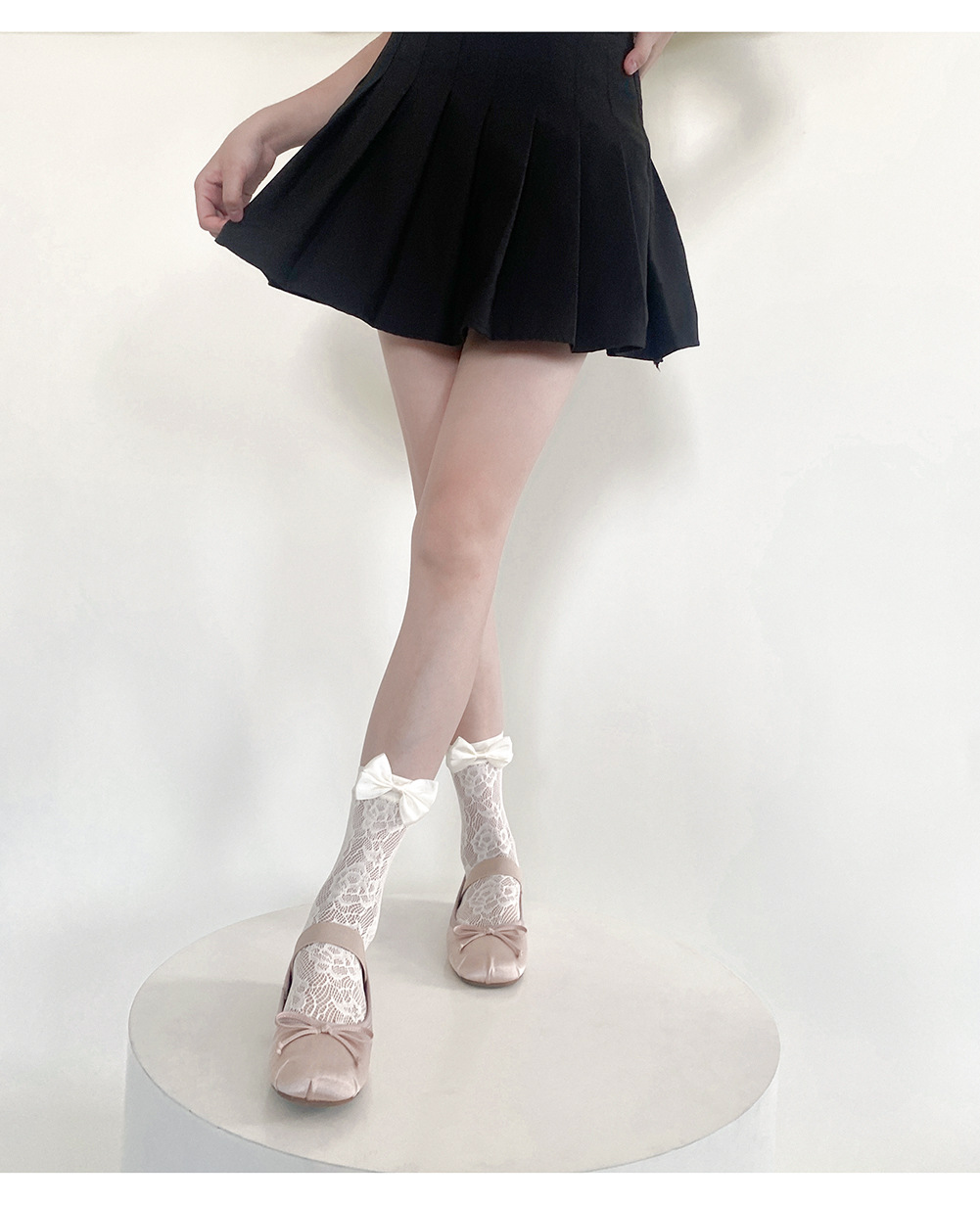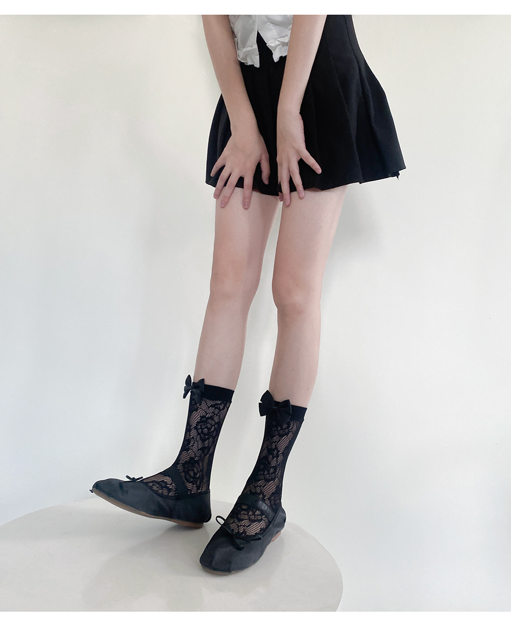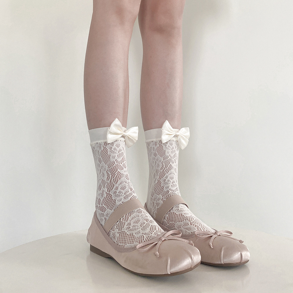 발레 스타일 밀크 화이트 레이스 새틴 보우 양말 여성용 여름 얇은 로리타 중간 길이 양말 샤넬 스타일 여성용 양말스토어 가기