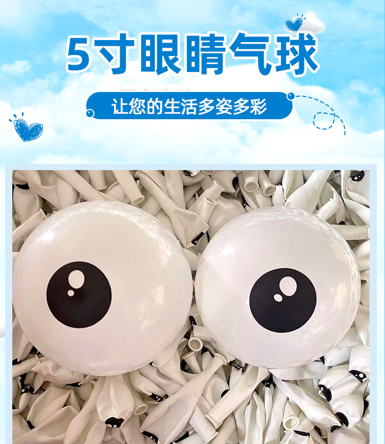 5inch 흰색 인쇄 어린이 문어 동물 눈 만화 캐릭터 작은 눈알 거리 판매 장식 DIY 라텍스 풍선