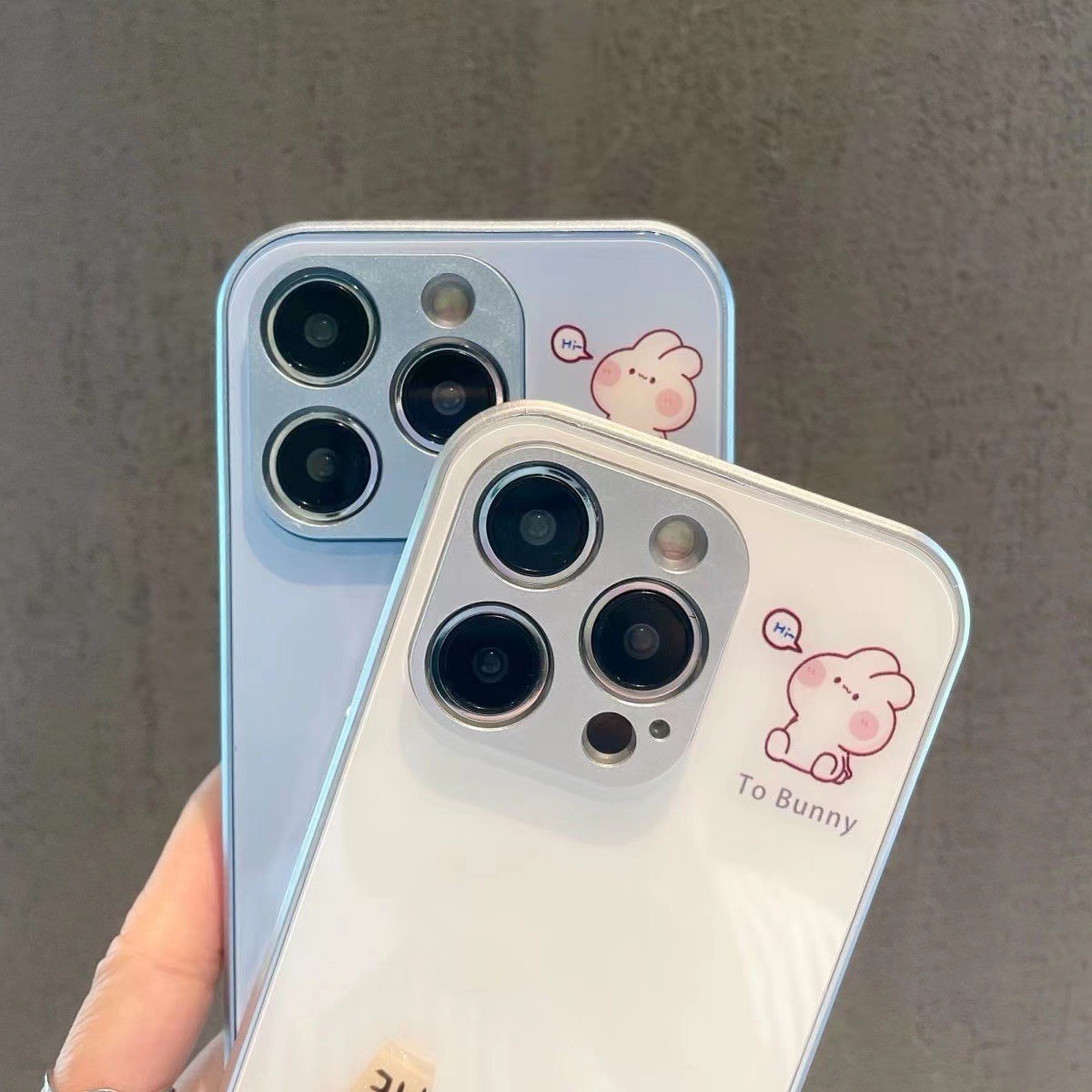 Apple 15Pro 휴대 전화 케이스에 적합한 귀여운 영어 토끼 새로운 iPhone 15 유리 인터넷 연예인 13 모든 것을 포함하는스토어 가기