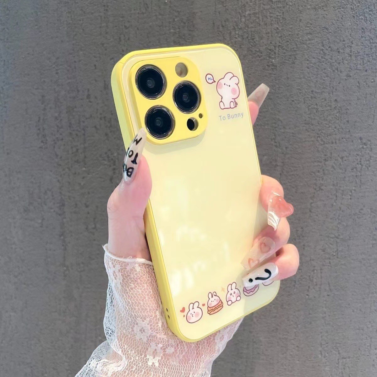 Apple 15Pro 휴대 전화 케이스에 적합한 귀여운 영어 토끼 새로운 iPhone 15 유리 인터넷 연예인 13 모든 것을 포함하는